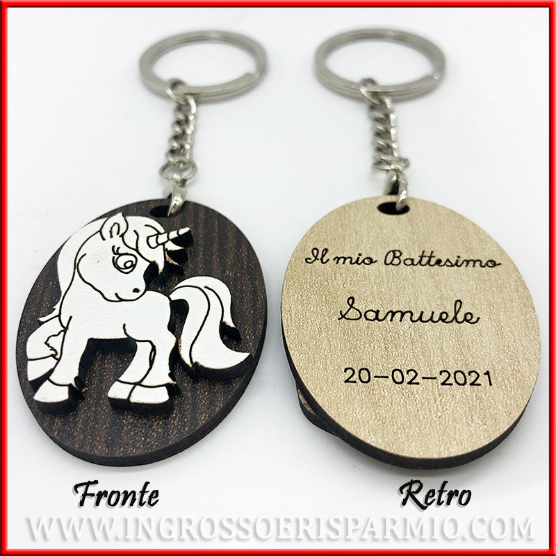 Richiedi di effettuare un'incisione sul retro per ottenere PORTACHIAVI PERSONALIZZATI: in base all'evento per cui saranno utilizzati, indica nome, data o tipo evento ("Il 1° compleanno di...", "Il battesimo di..."ecc).