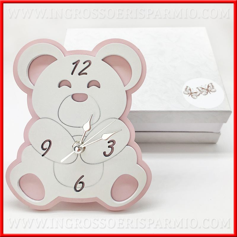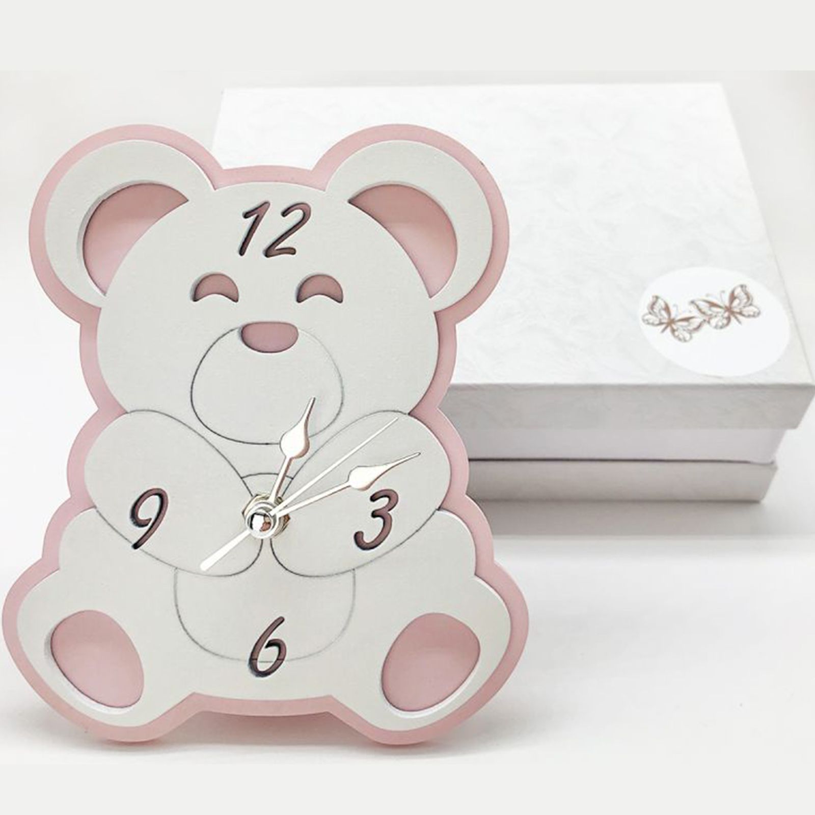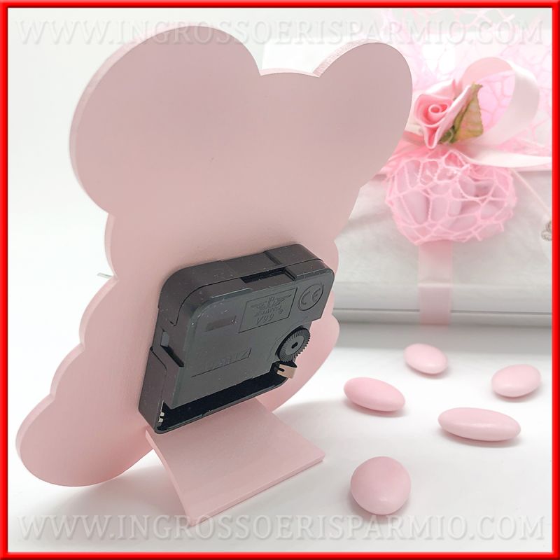 Non fare una scelta a caso: il battesimo della tua bambina merita di essere ricordato con delle bomboniere originali, anche se economiche, come questo orologio in legno a forma di orsetto.