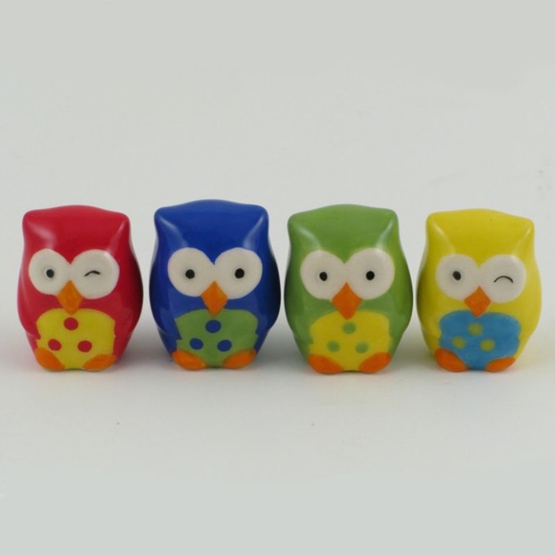 Ogni gufetto è realizzato in fine ceramica lucida, assortito in 4 varianti di colore: verde, giallo, blu, rosso (non è possibile scegliere il colore).