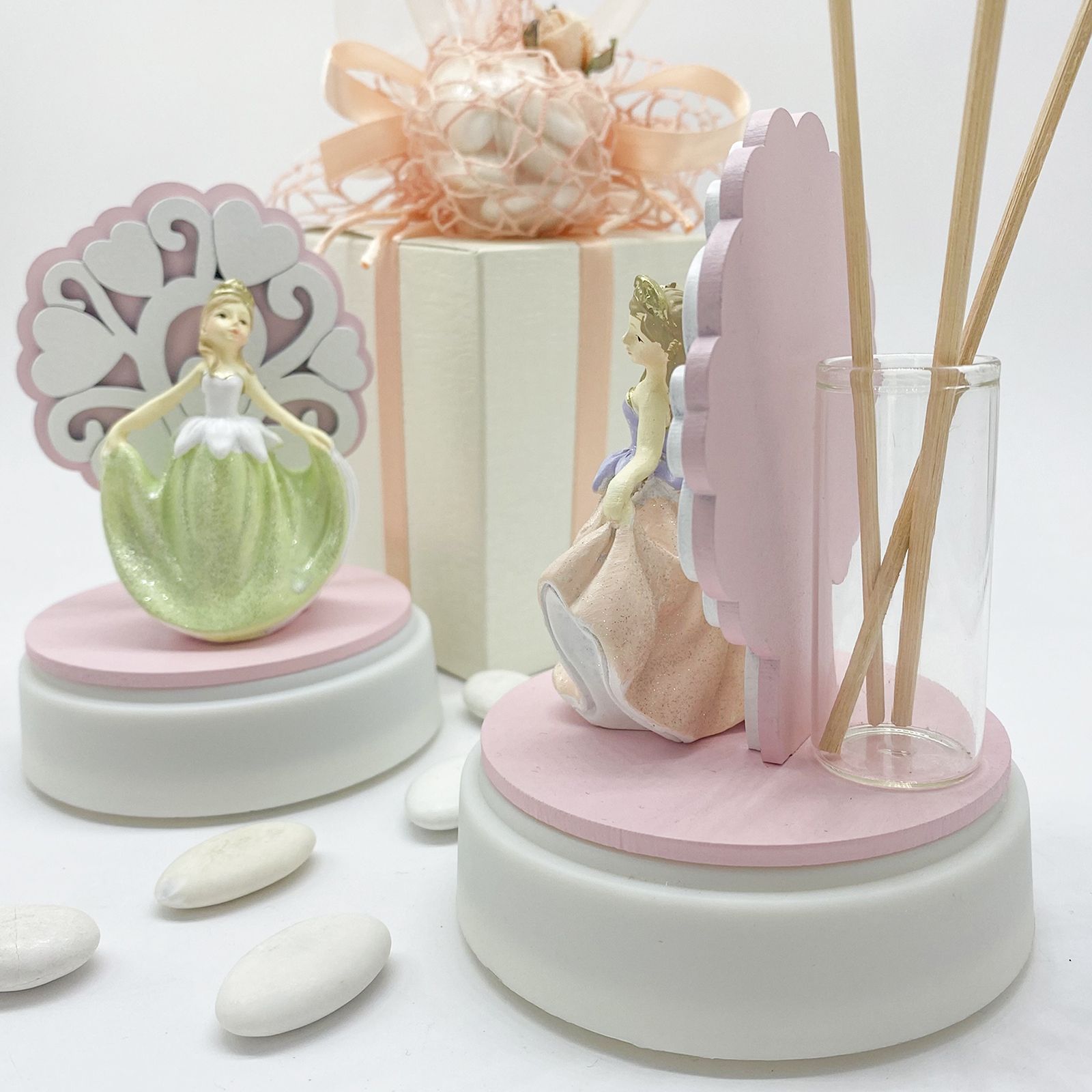 Puoi utilizzare questo carillon per bomboniere tema principesse, bomboniere battesimo bambina, bomboniere comunione femminuccia.