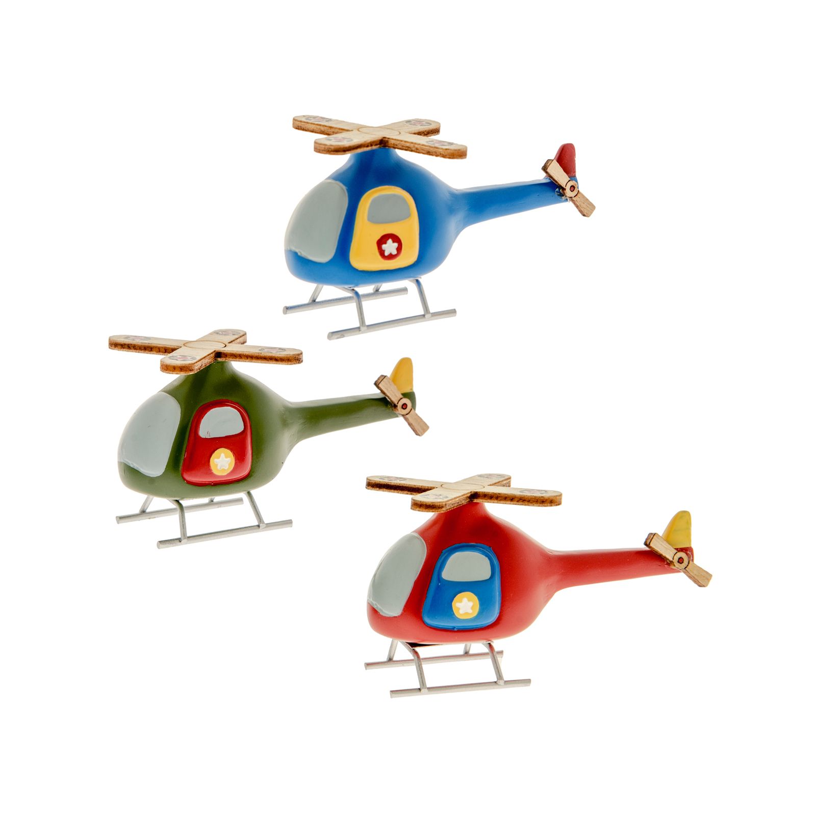 Particolarissimi elicotteri in resina in tre colorazioni assortite con eliche in legno allegri e molto realistici!