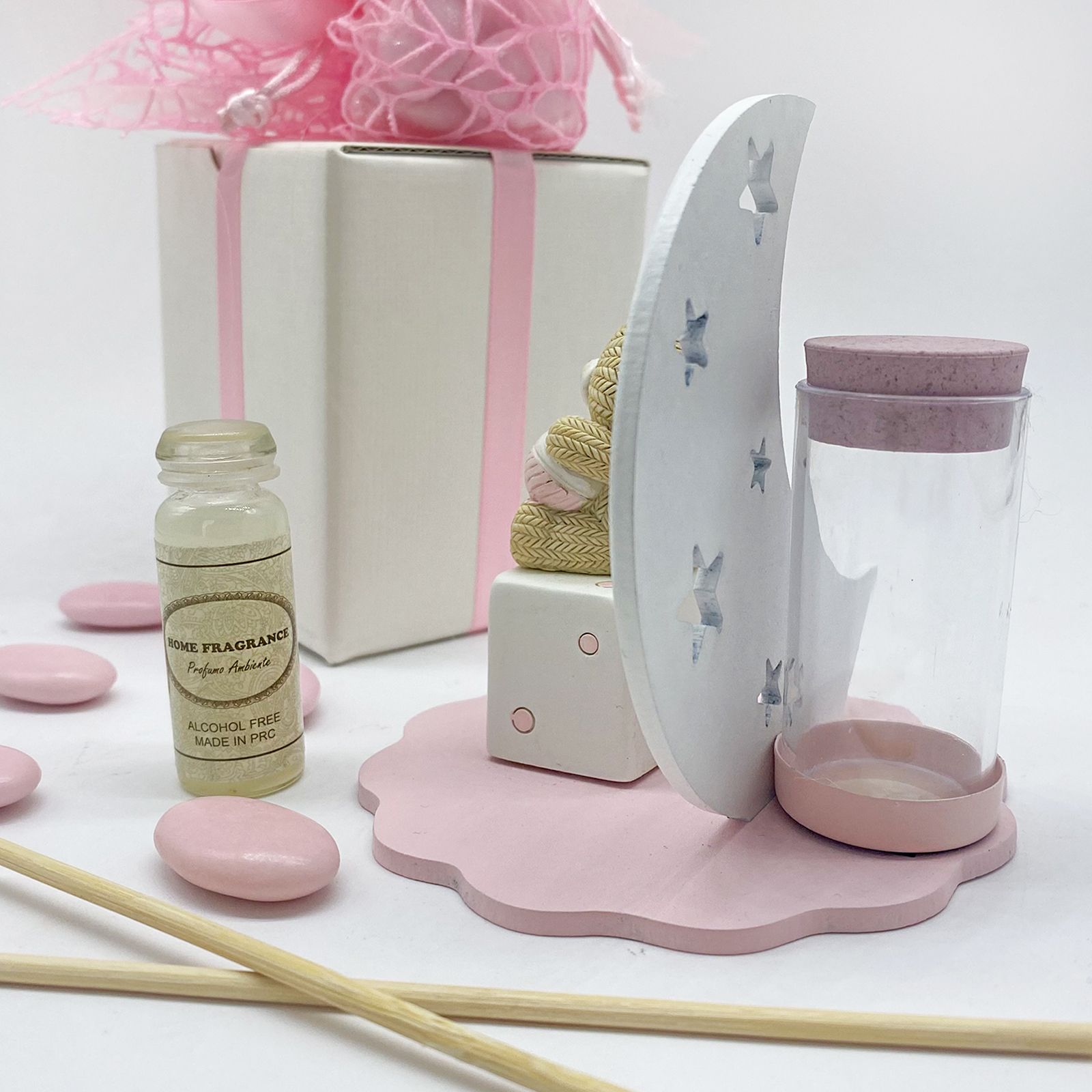 Puoi utilizzare i nostri diffusori di aromi per bomboniere battesimo bimba o come originali bomboniere nascita bambina.
