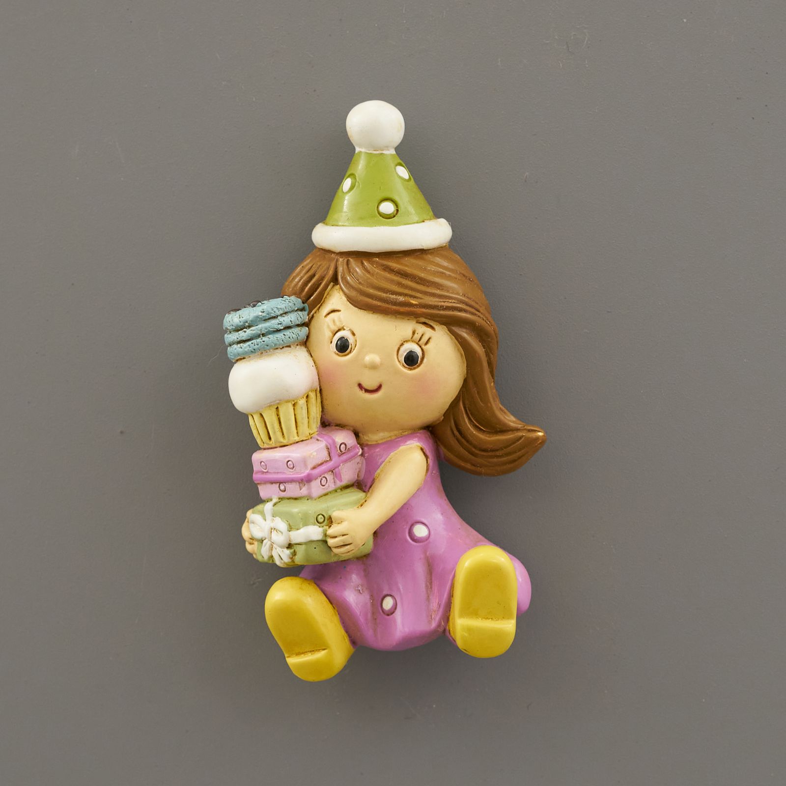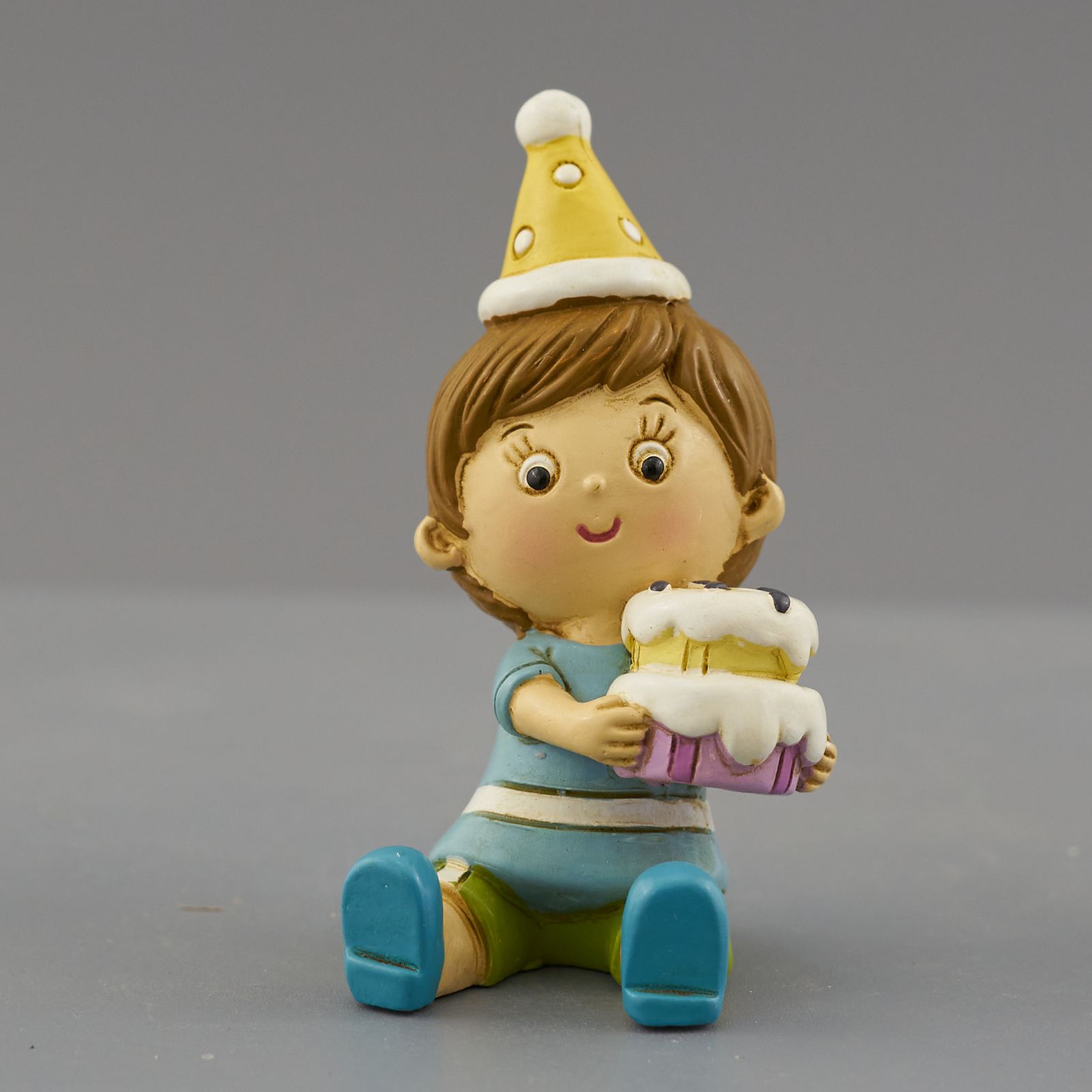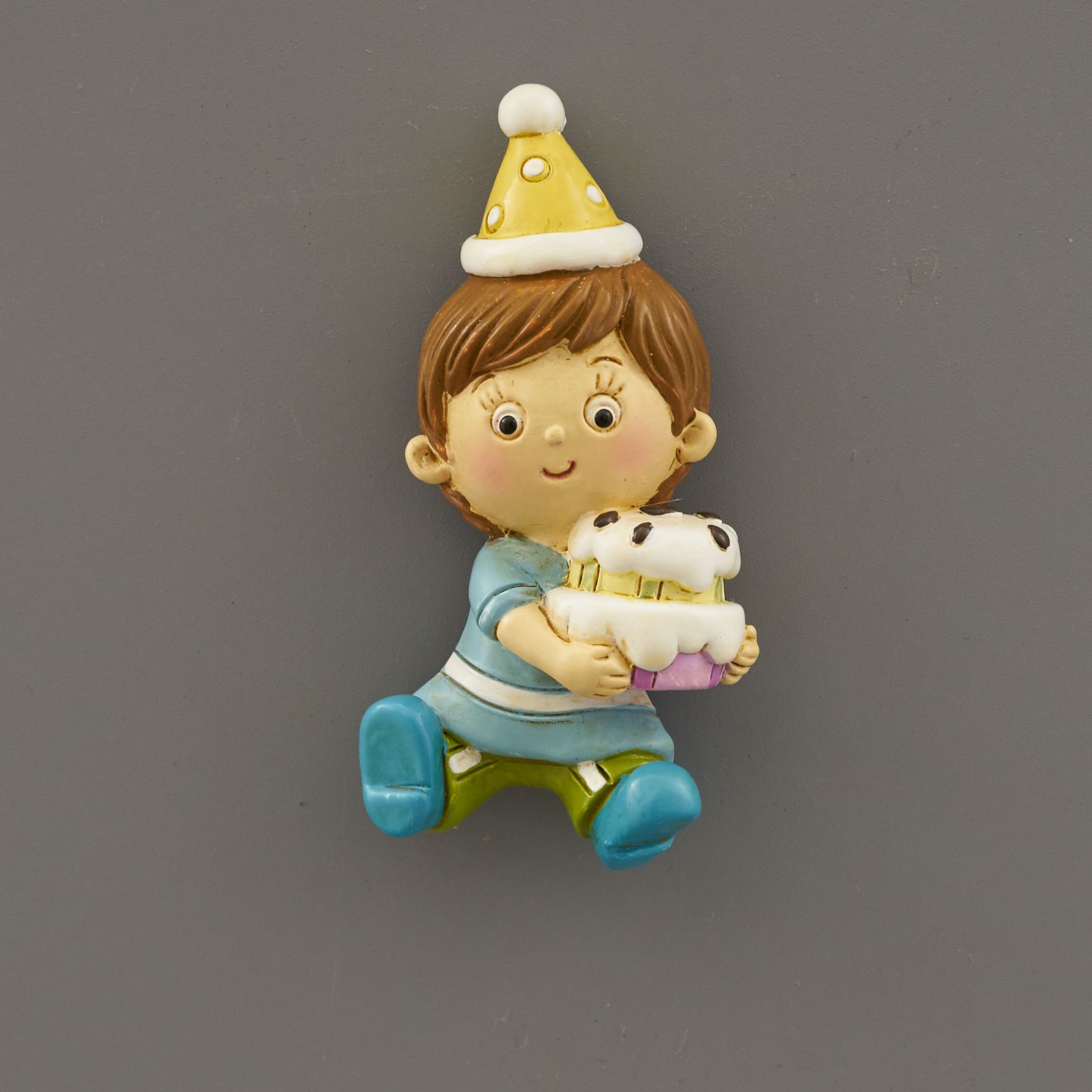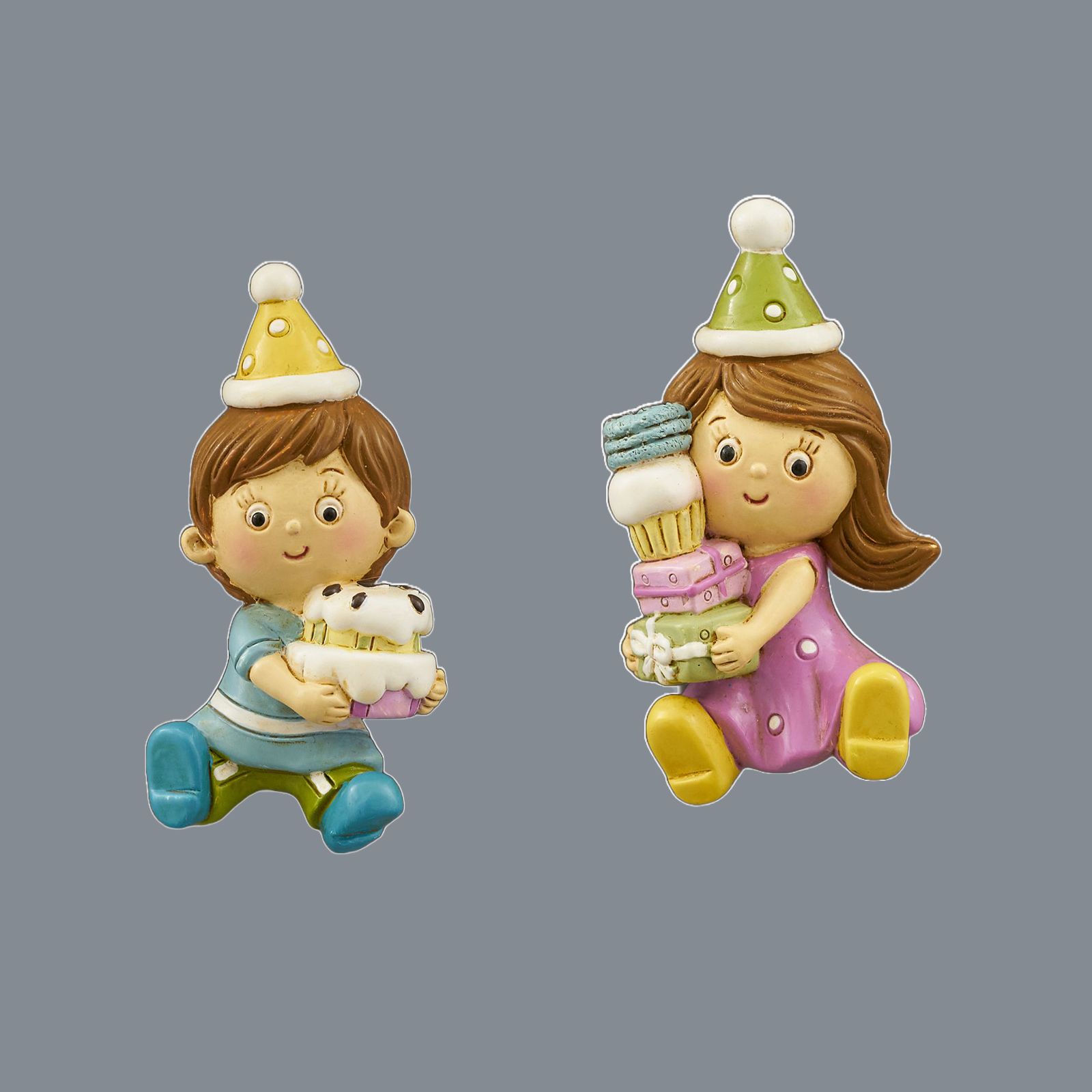 Scegli nella nostra selezione bomboniere 2023 queste statuine o calamite raffiguranti un bambino o una bambina vestiti a festa con accanto piccoli dolciumi.