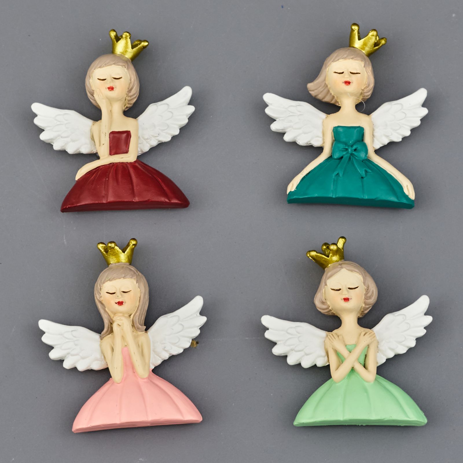 Colorati magneti con soggetto fatina del bosco, dolci bambine alate con abiti in 4 tonalità di colore. Le statuette bomboniere fatina sono realizzate in resina.