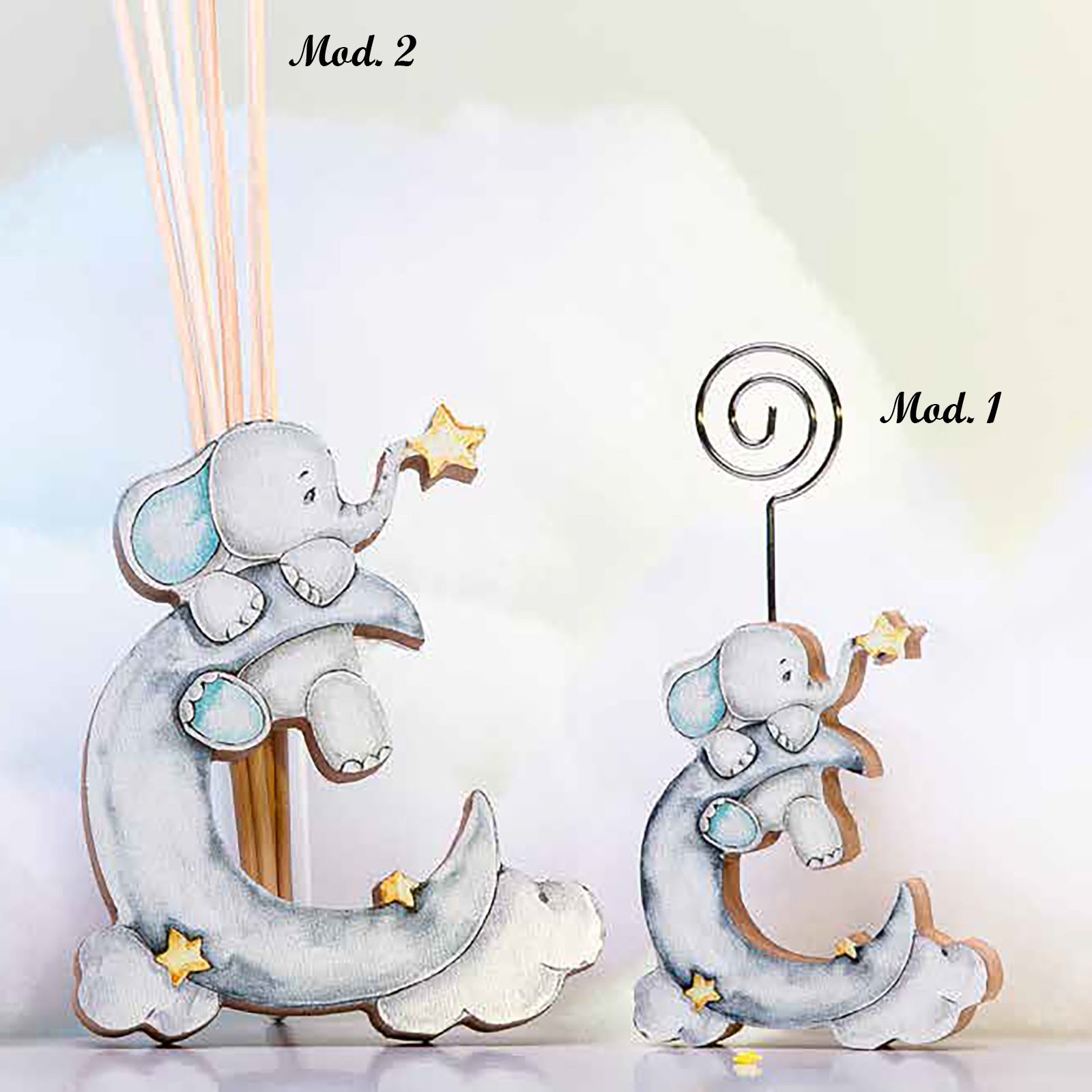 Acquista i nostri elefantini, ritratti mentre si appendono ad una falce di luna circondati da tenere nuvolette disponibili in due versioni: memoclip e profumatore per ambienti!