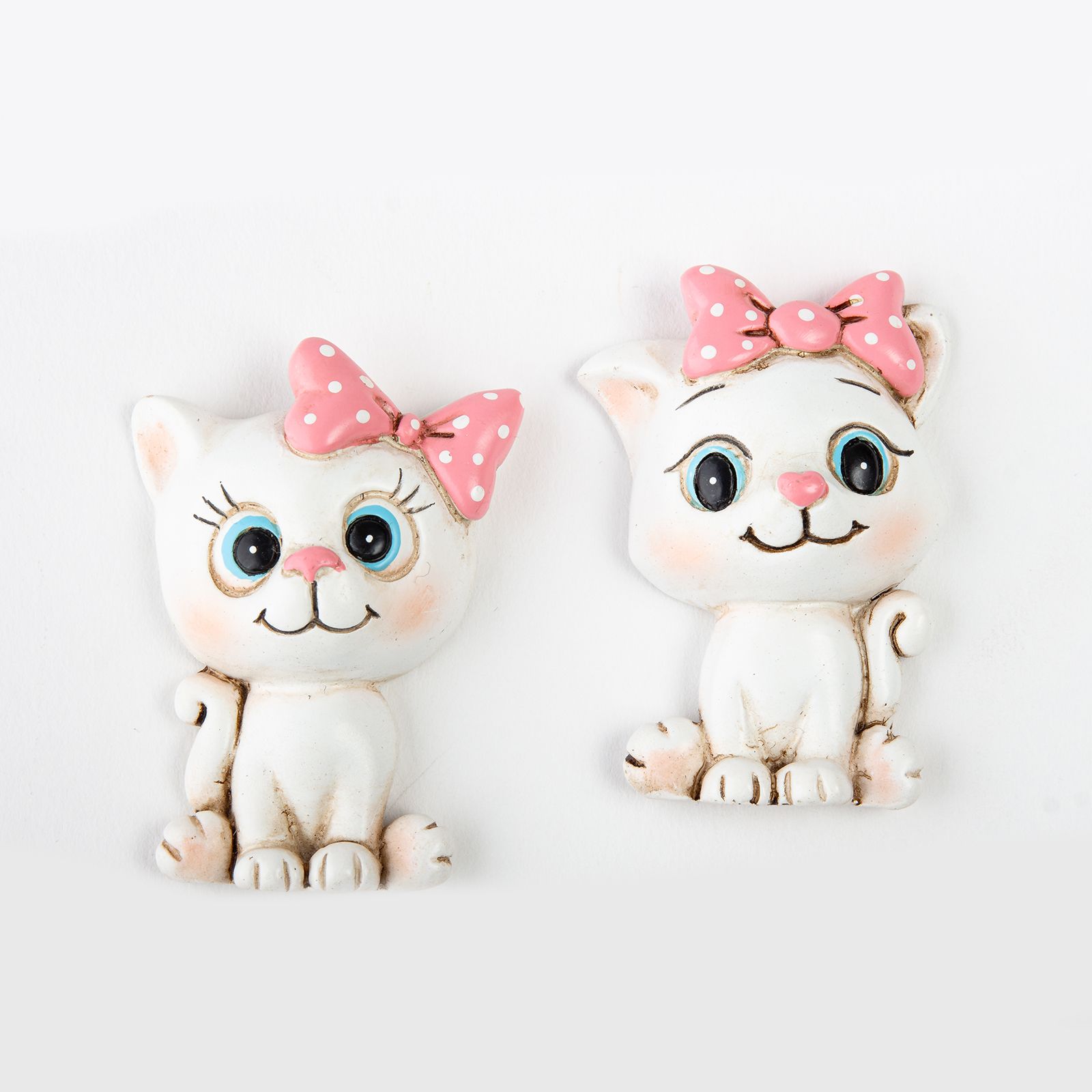 Scopri i magneti a forma di gattino, la dolcezza animata che porterà un tocco giocoso alla tua giornata. Realizzati in resina, questi graziosi gattini con il loro fiocchetto rosa a pois bianchi sono disponibili in due varianti assortite e sono dotati di una pratica calamita.