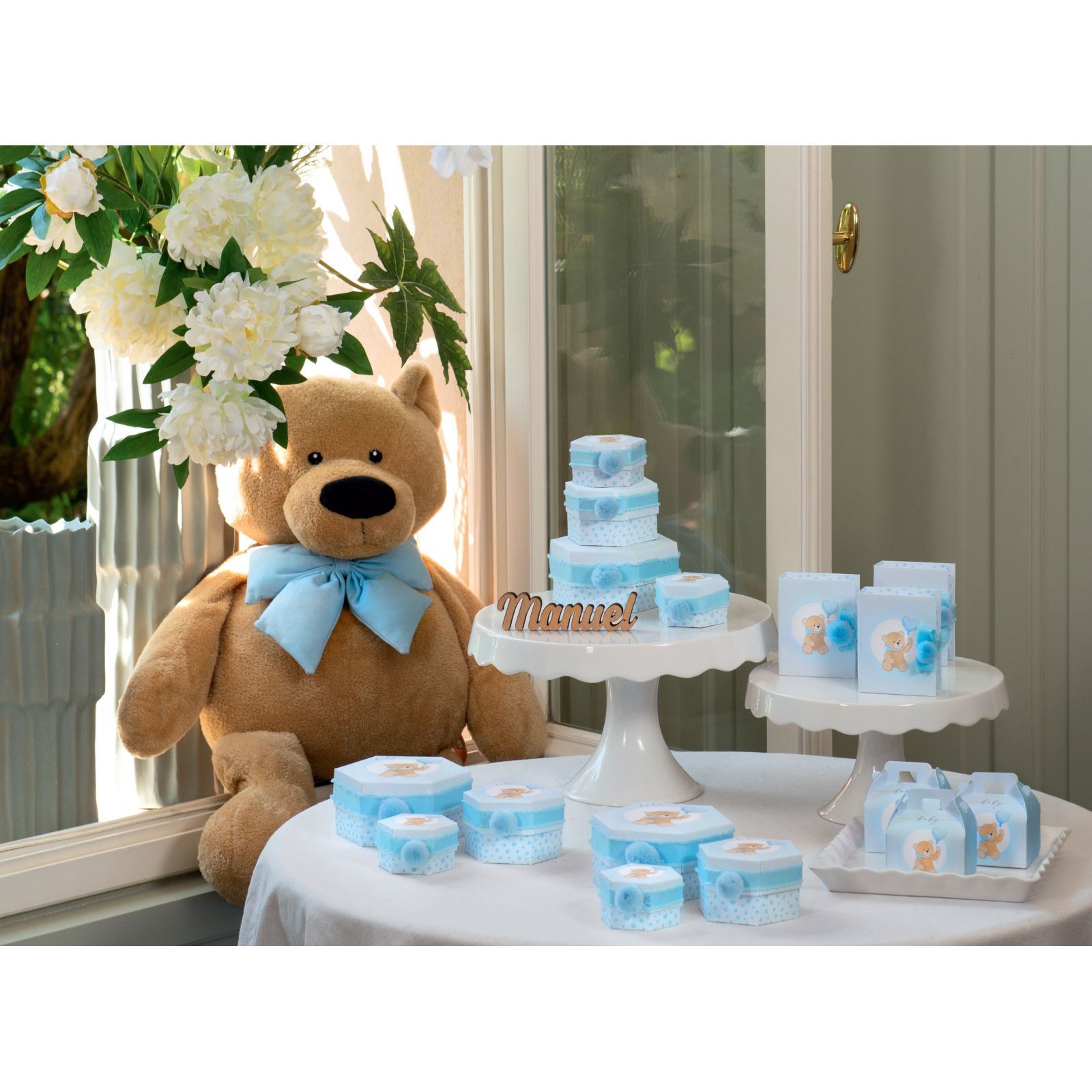Un orsetto tenero con un palloncino a forma di cuore e la scritta "Baby" completano il design, rendendo questa bomboniera ancora più affascinante e adatta per eventi legati ai bambini.