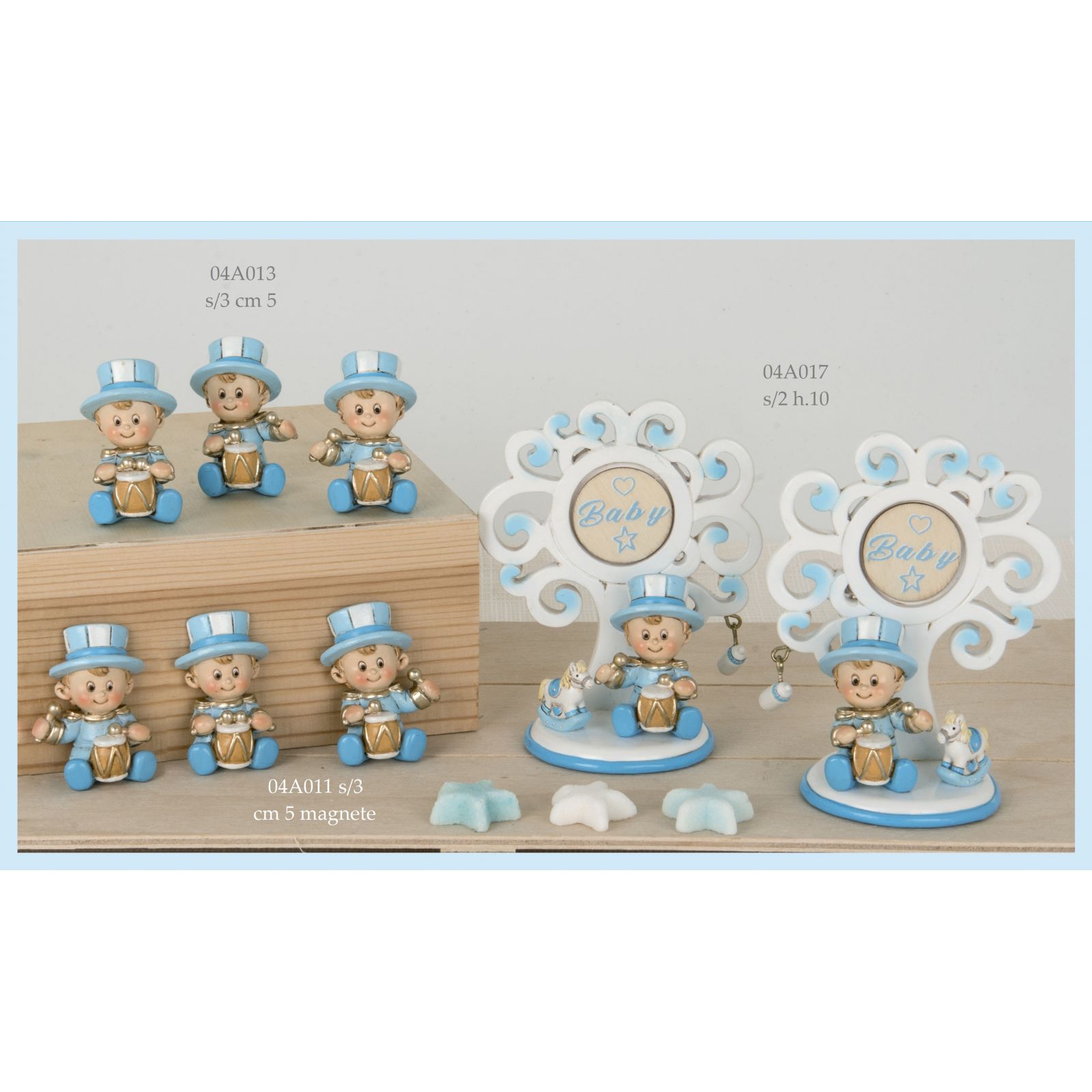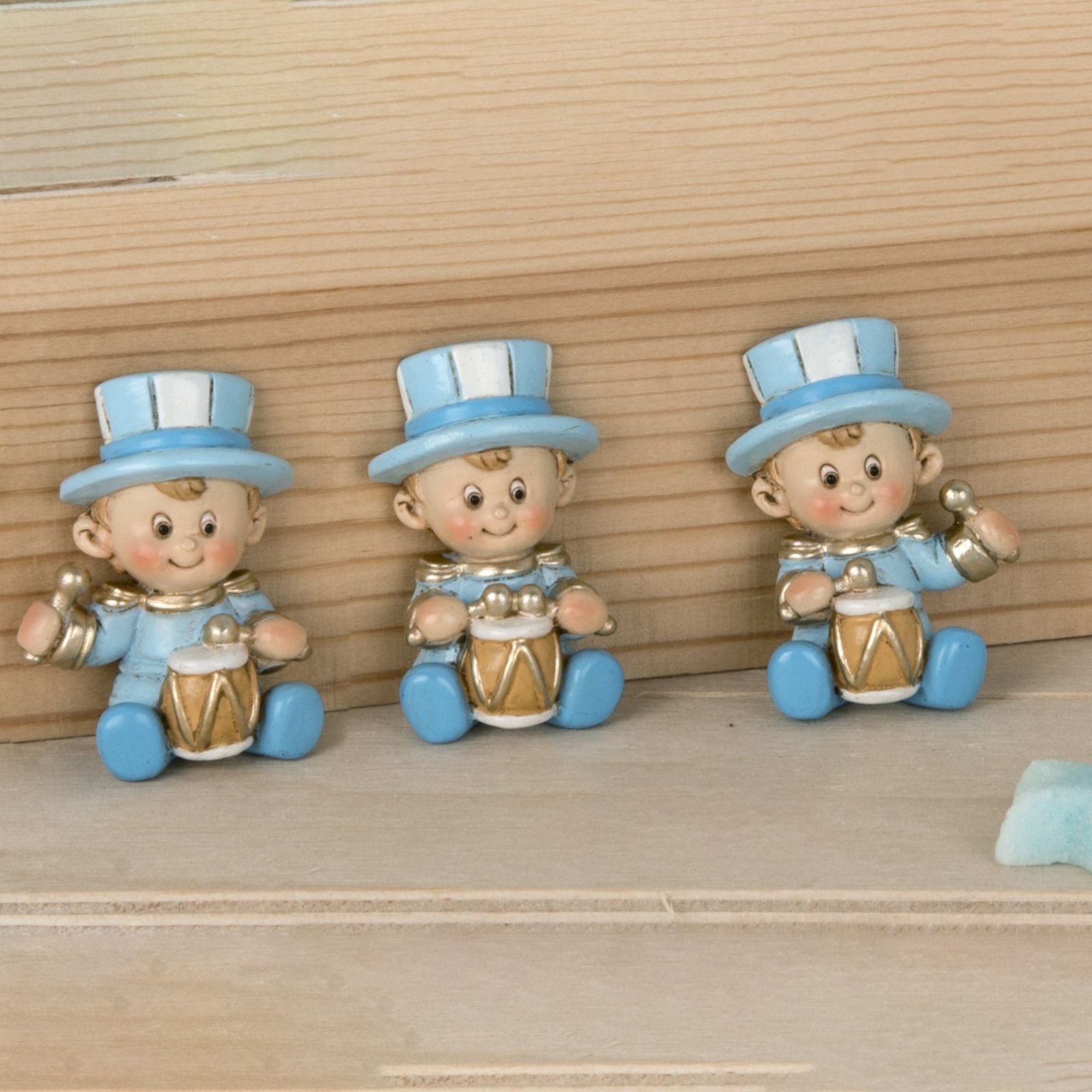 I magneti bambino jolly con tamburello sono bomboniere che porteranno gioia e allegria ai tuoi eventi speciali. Realizzati in resina , questi adorabili magneti raffigurano un bimbo jolly seduto con un tamburello, indossando una tuta celeste con dettagli oro e un cappello a cilindro. Ogni magnete è assortito in varie posizioni, aggiungendo un tocco di unicità a ogni pezzo.