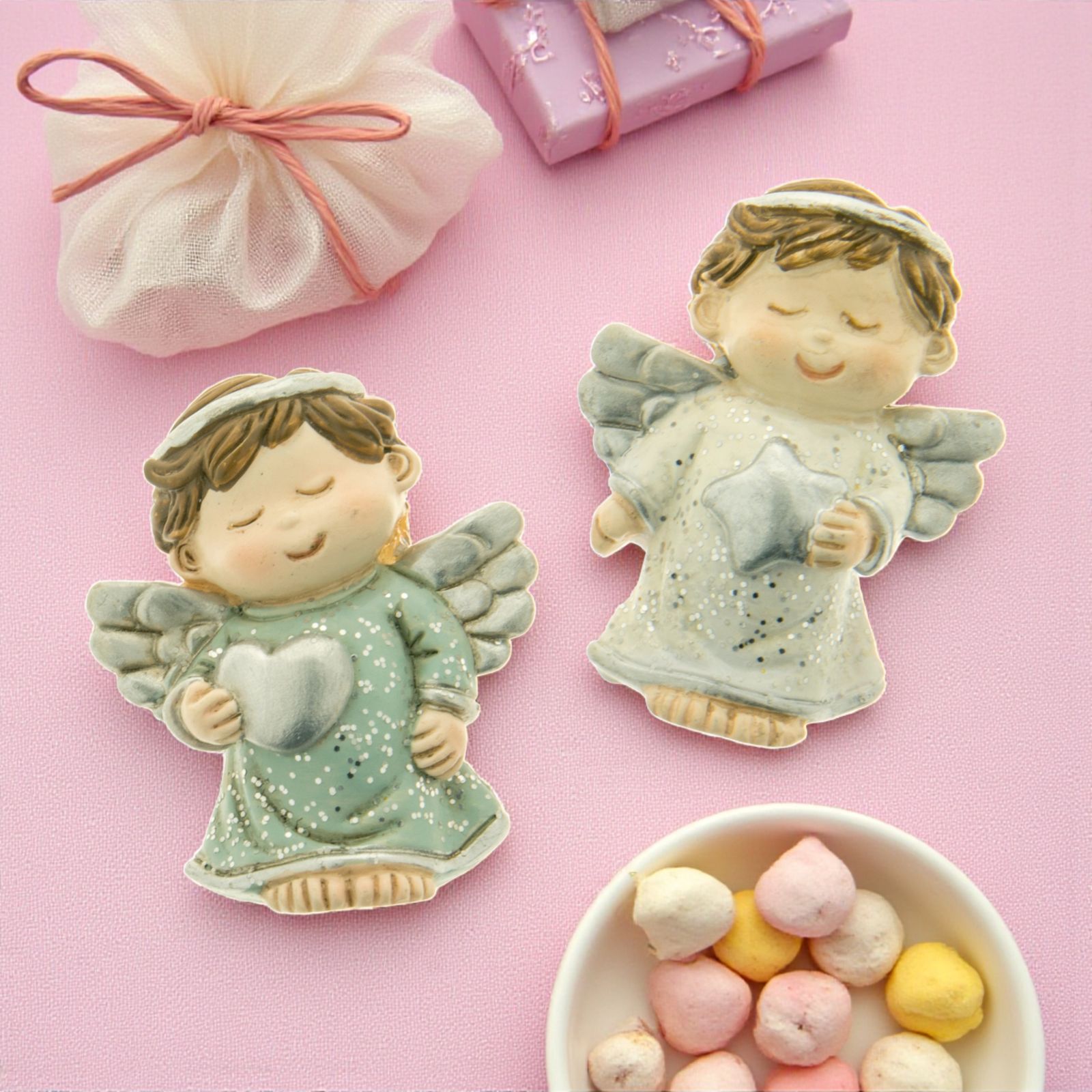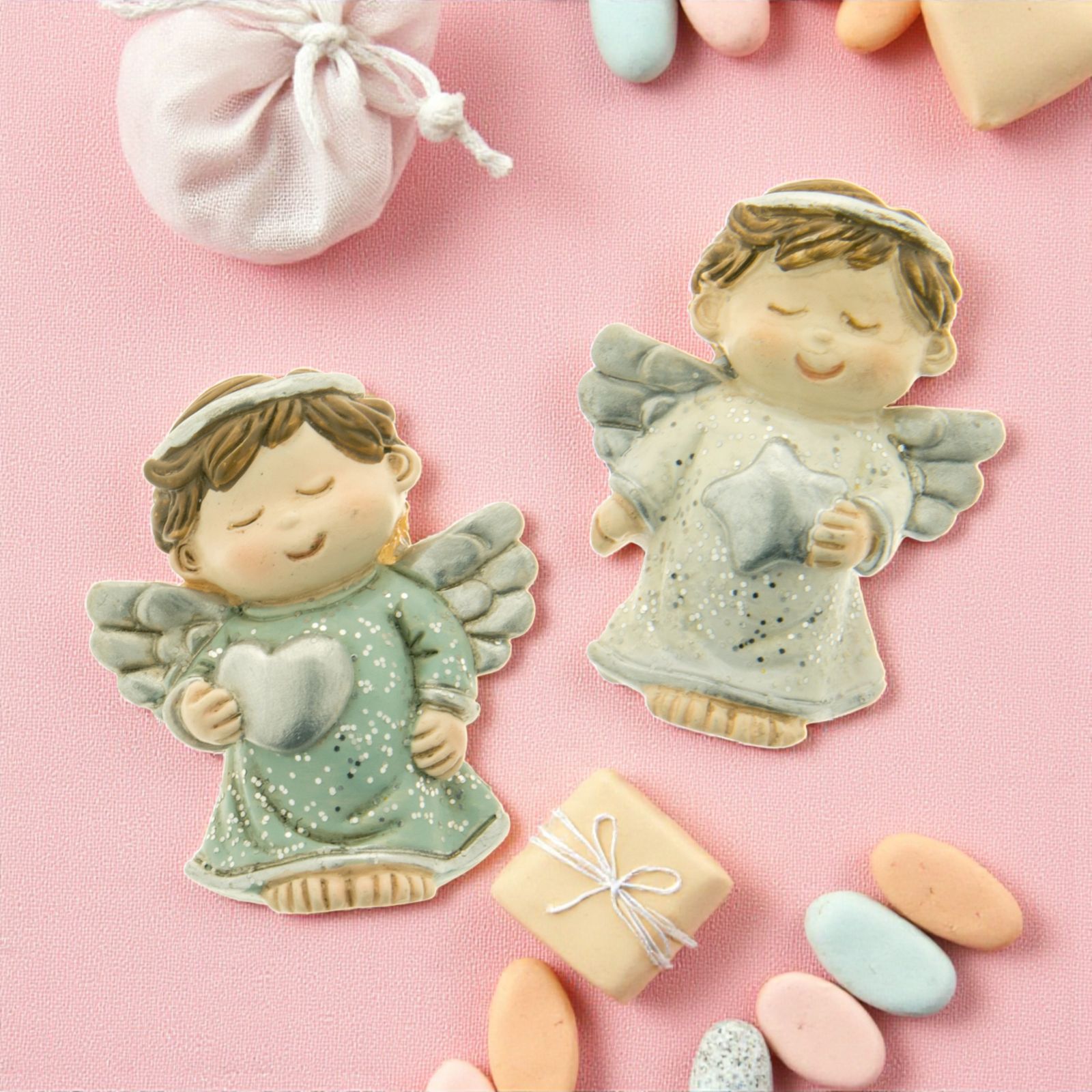 Adatta per numerosi eventi, come nascite, battesimi, compleanni, 1 anno e periodo natalizio, questa calamita angioletto con cuoricino è un oggetto simpatico che proteggerà i festeggiati con la sua presenza tenera e affettuosa, facendo in modo che ricordino sempre la vostra gratitudine.
