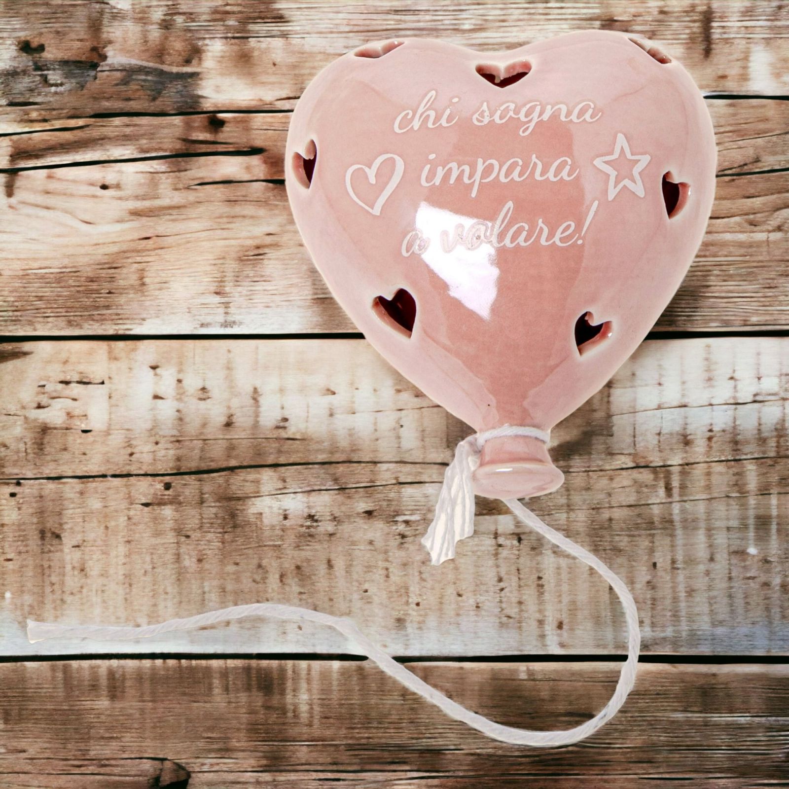 Regala una lampada led cuore a forma di palloncino rosa con la frase “Chi sogna impara a volare” per rendere unico e speciale ogni evento.