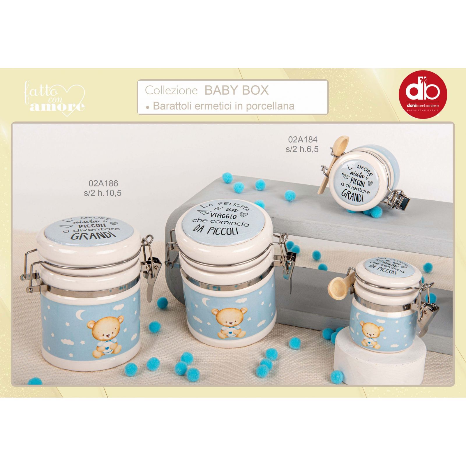 I barattoli ermetici con orsetto e frasi sul coperchio: "L'amore aiutai piccoli a diventare grandi"e "la felictà è un viaggio che comincia da piccoli" sono il regalo originale per ogni genere di occasione.