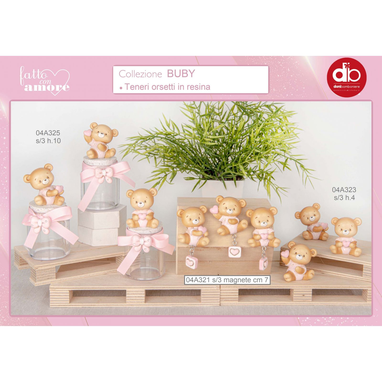 Regala un ricordo indimenticabile a una bambina con il nostro Barattolino porta confetti con orsetto e cuori! Realizzato in vetro e resina di colore rosa, questo barattolino è alto 10 cm circa e sarà una bellissima aggiunta alla collezione Buby per la tua piccola.