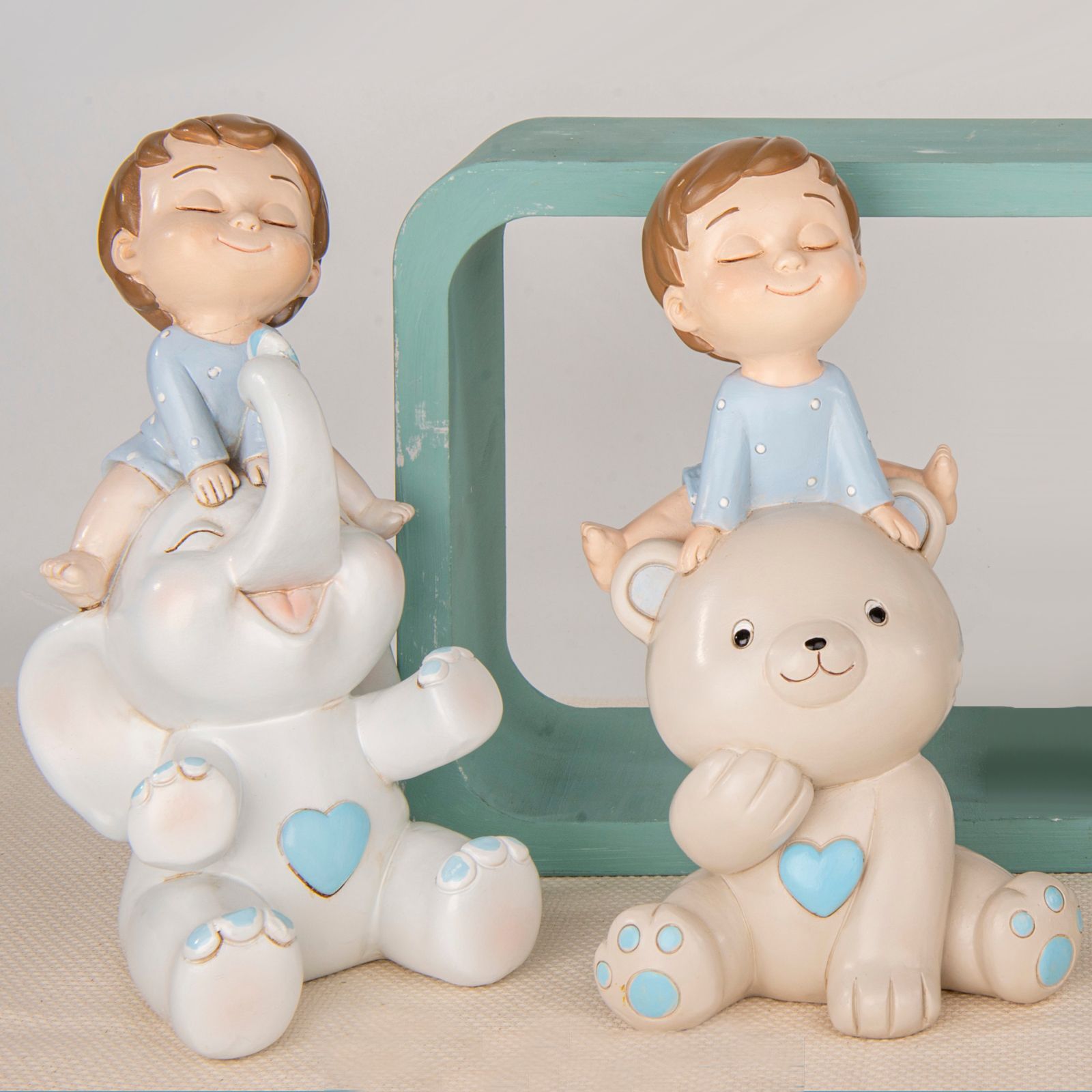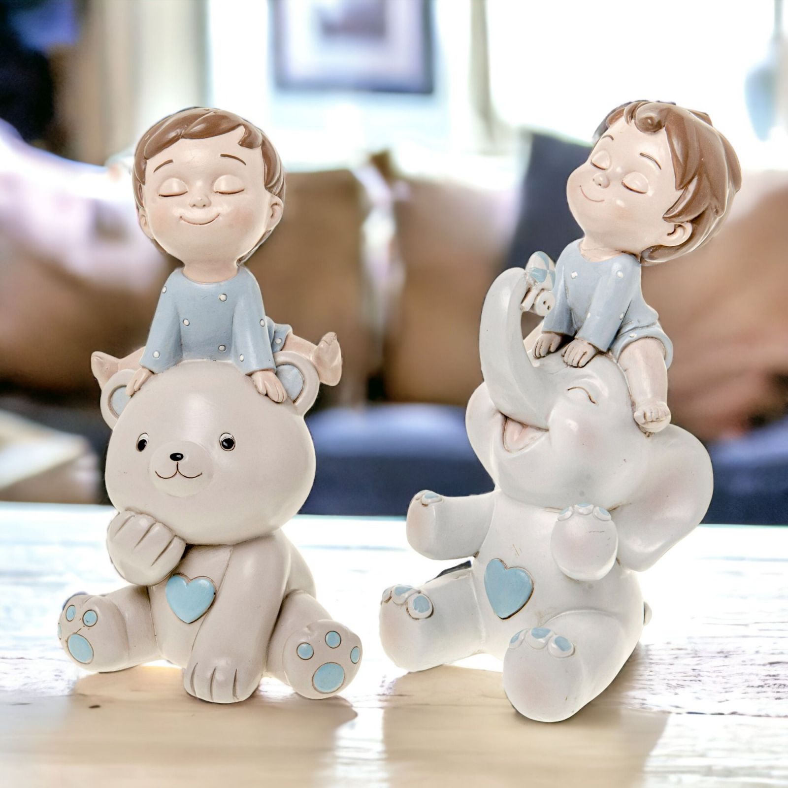Regala un dono speciale che accompagnerà il bambino nel suo percorso di crescita con questo salvadanaio dalla linea Sweet Boy, perfetto come bomboniera. Questo delizioso elemento è realizzato in resina, ed è disponibile in due varianti: tenero bambino seduto su elefantino o sull'orsetto. Le dimensioni sono di circa 21 cm, ed è di colore grigio e beige come da foto.