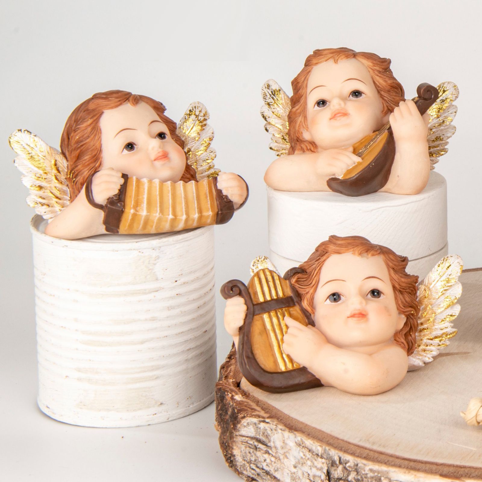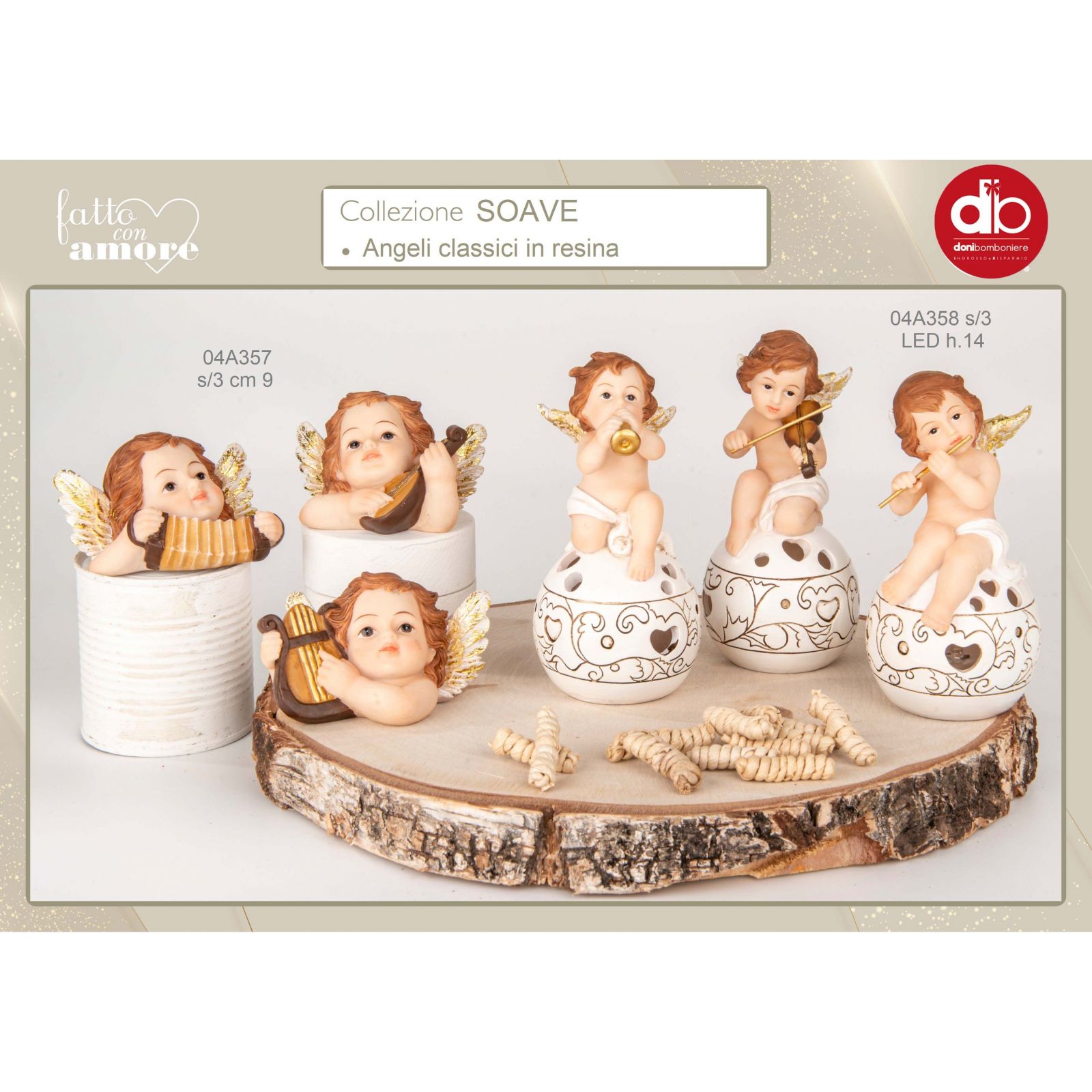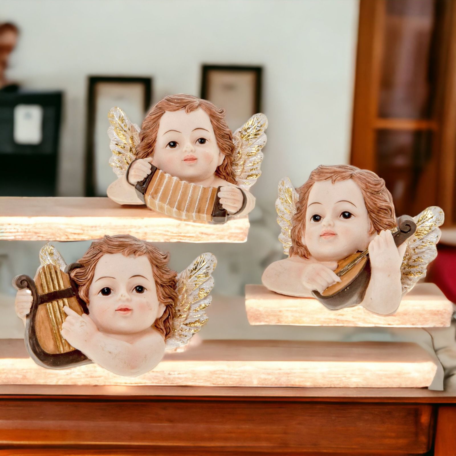 Statuina busto Angioletto, grazie al suo design di linea soave e alla sua dimensione di 9 cm circa, rappresenta un regalo ideale per un'ampia gamma di eventi. Realizzata in resina e disponibile in tre varianti con violino, arpa o fisarmonica, questa statuina offre emozioni uniche e, grazie ai suoi colori classici, rappresenta una scelta decorativa non solo elegante ma anche estremamente duratura. La statuina Viso Angioletto è un'ottima idea per celebrare l'arrivo di un bimbo, una comunione, una cresima così come eventi legati al periodo natalizio, offrendo un simbolo di protezione e musica angelica.