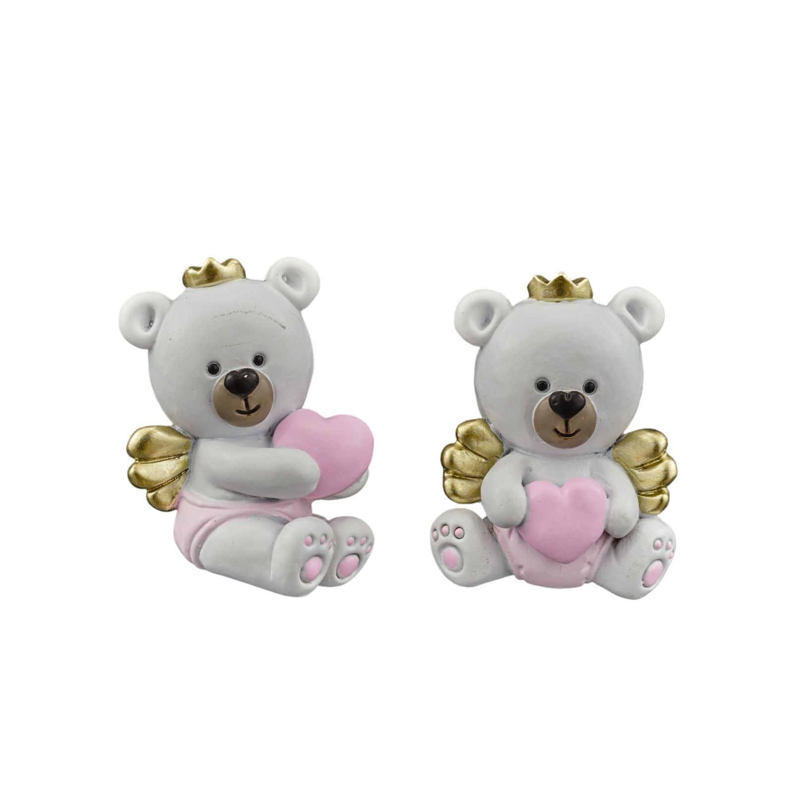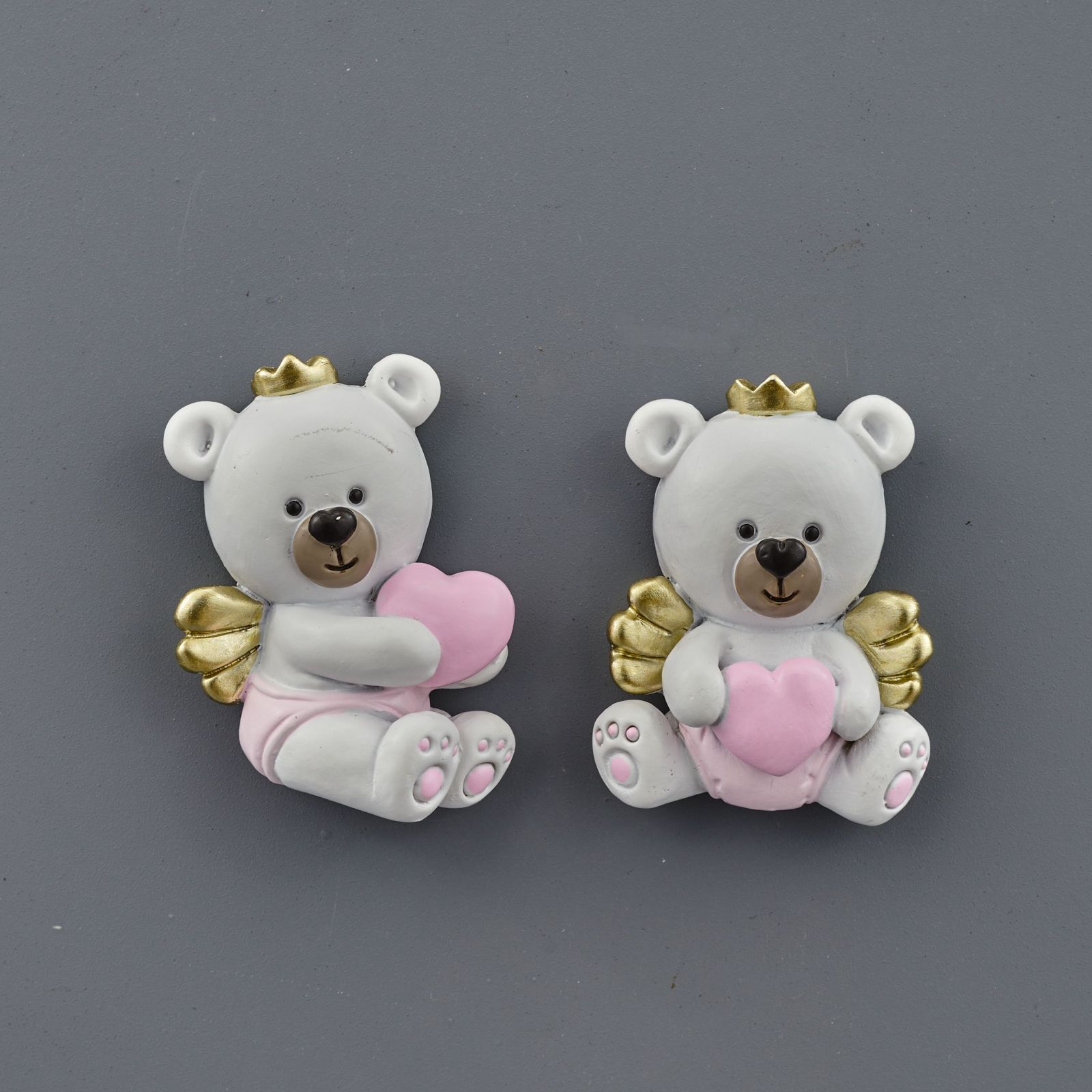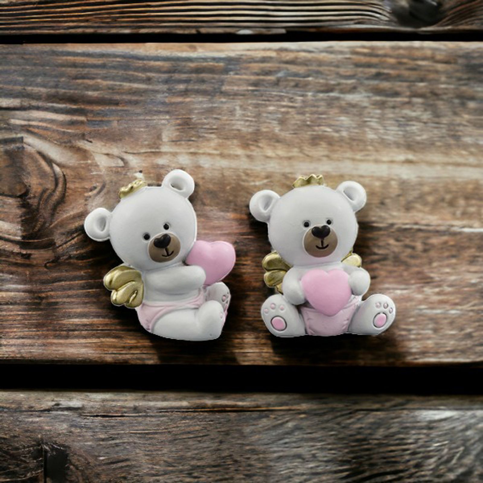 Aggiungi un tocco speciale ai tuoi eventi con questa adorabile calamita orsetto, con una coroncina dorata e le sue ali e un cuoricino rosa che tiene tra le mani.Assortito in due varianti di posizione.