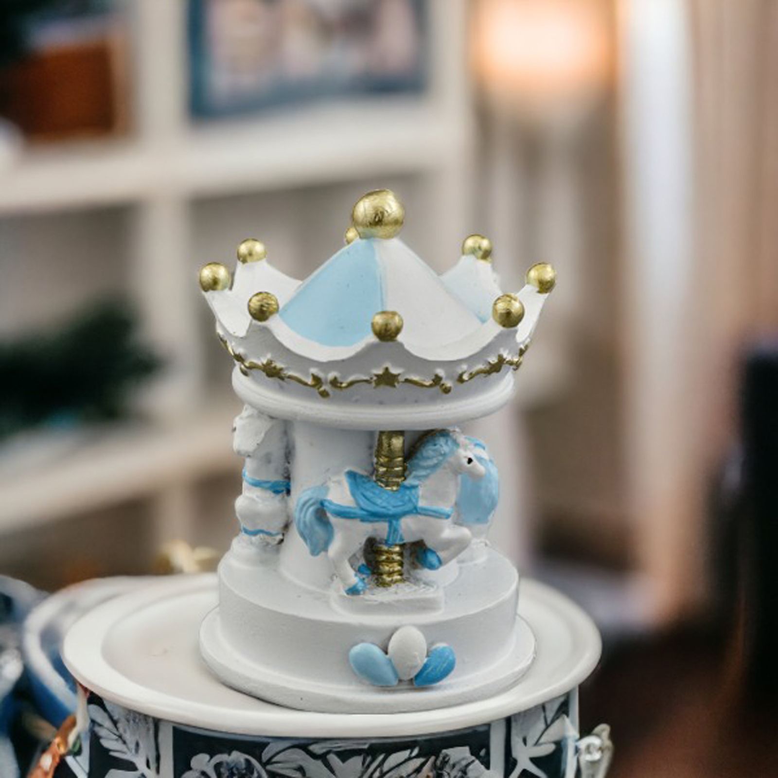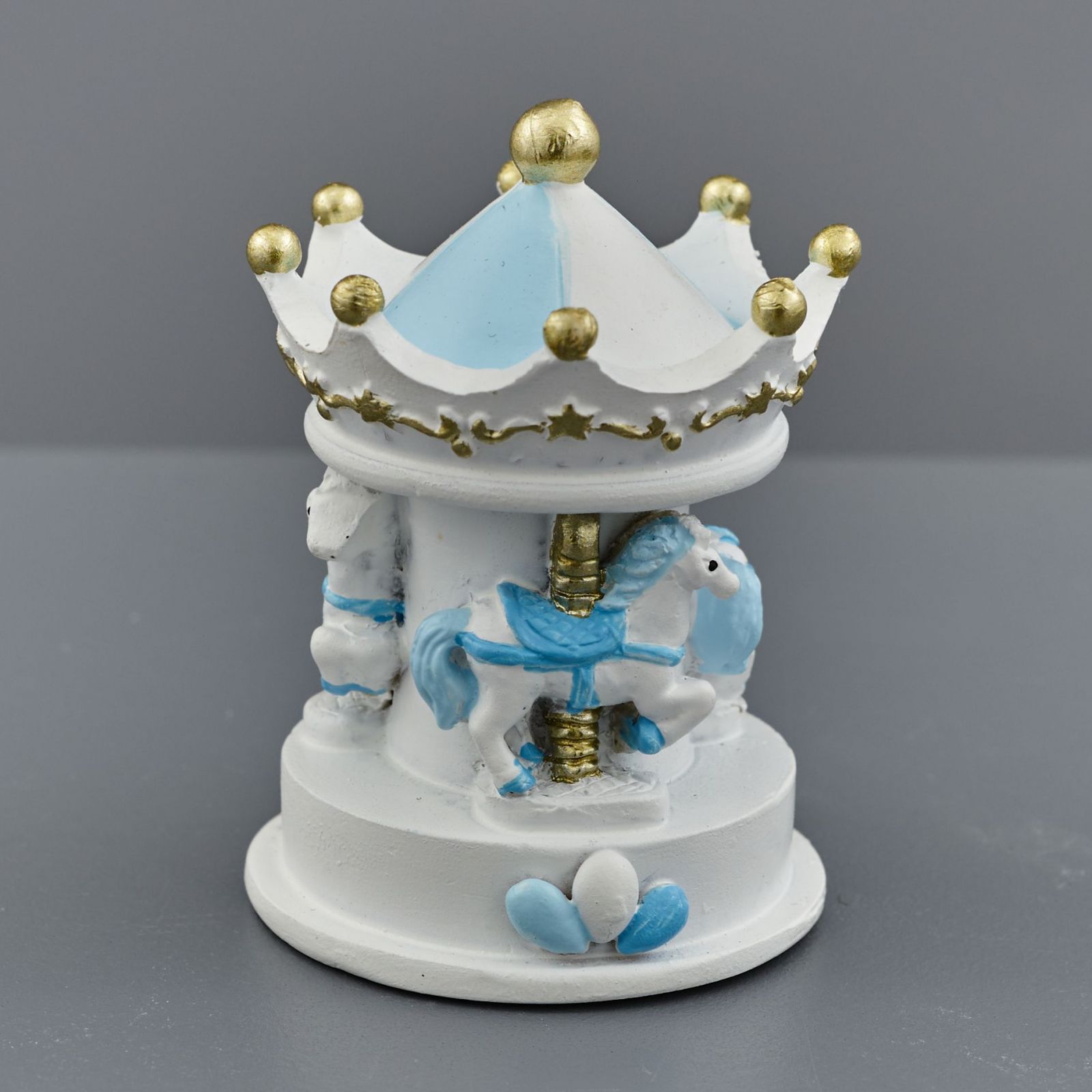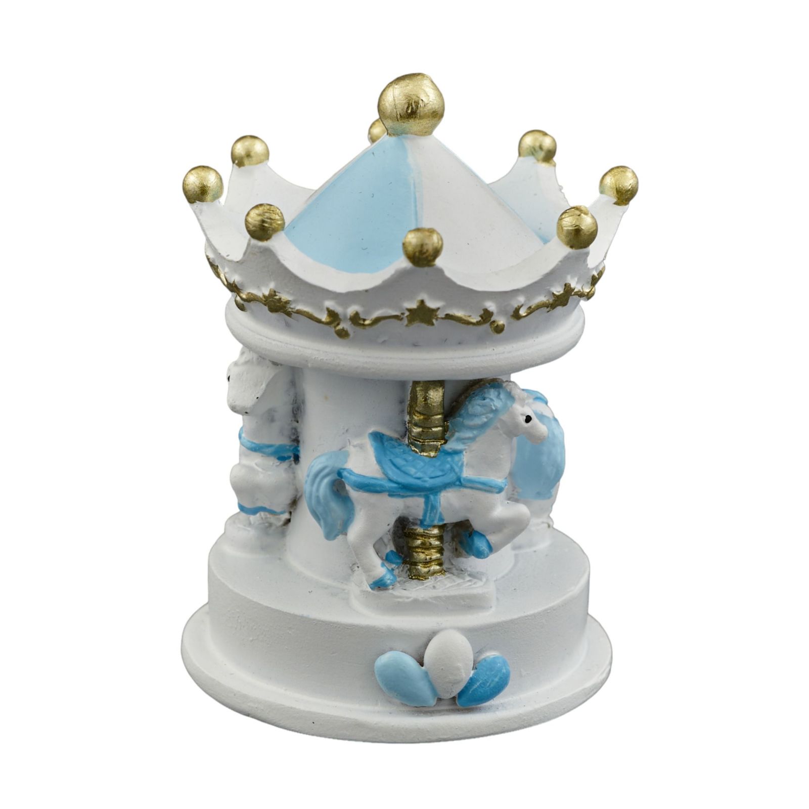 Questa giostrina con cavalli celeste con dettagli color oro è un dono davvero speciale per regalare ai vostri invitati. Misura 4X4X6 circa, è realizzata in resina ed è indicata per eventi come nascita, battesimo, primo compleanno. Se volete fare un grande effetto con i vostri pensierini, i vostri confettata, i vostri gadget o i vostri oggettini fine festa, questa statuina è la scelta perfetta!