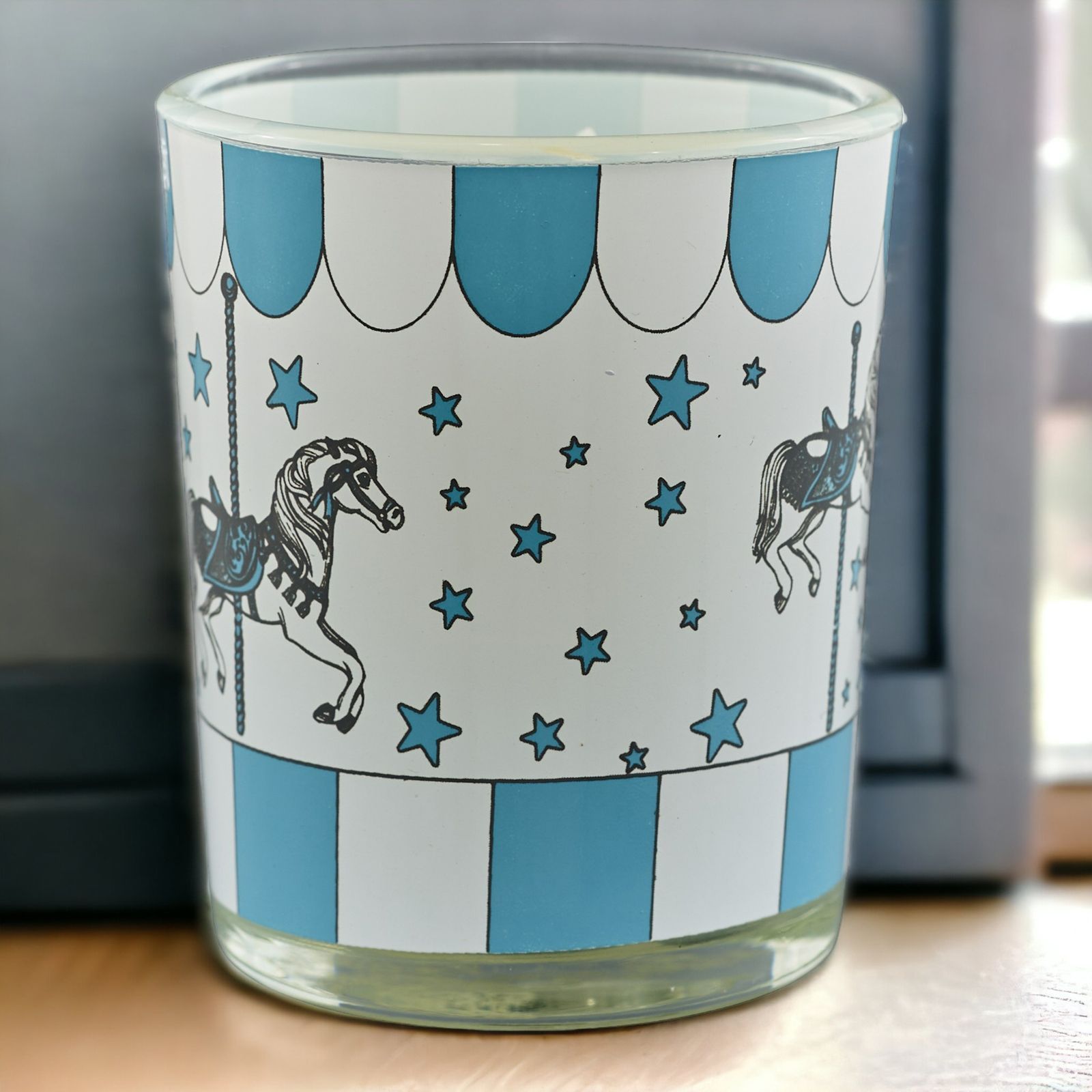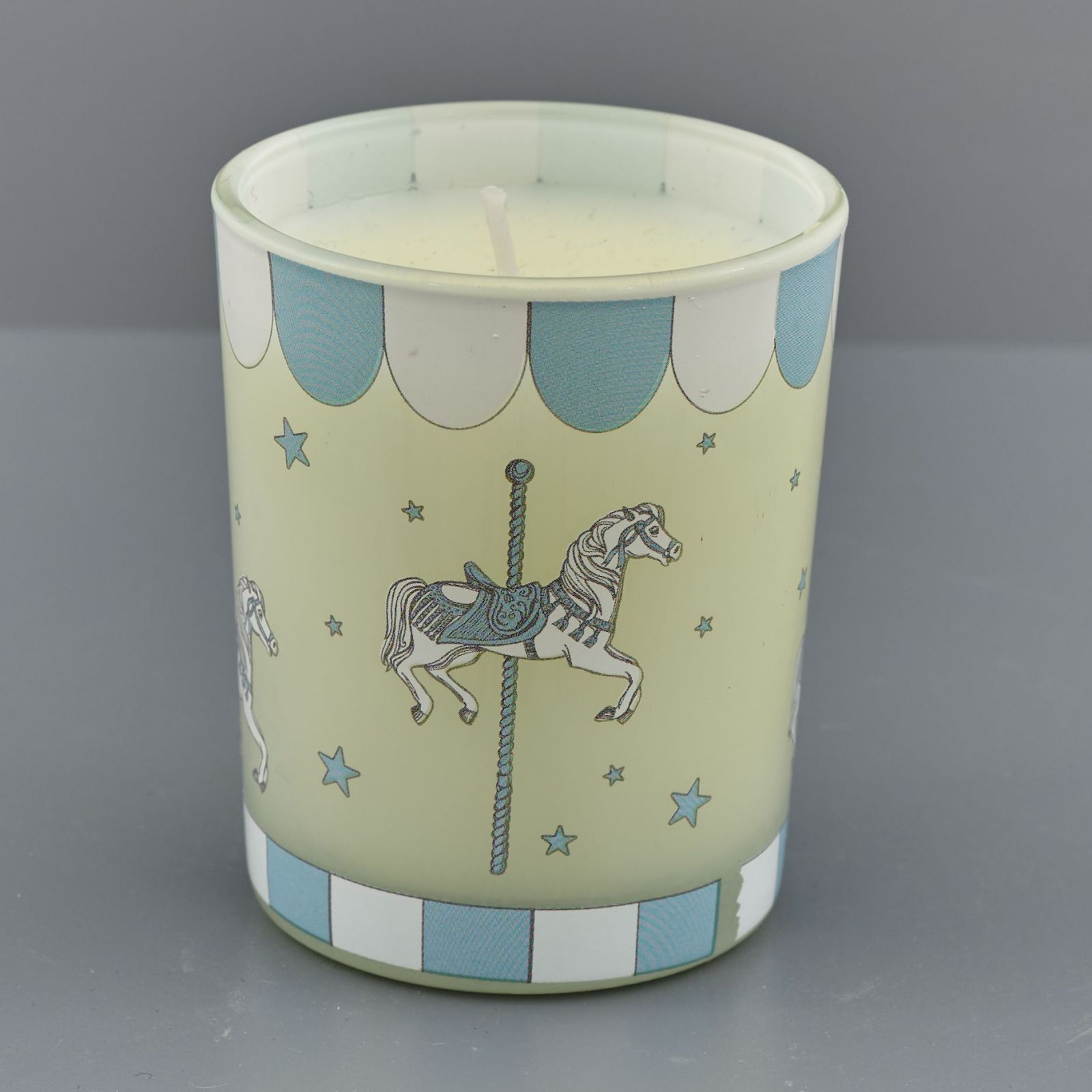 Portacandela decorato con carosello e dettagli celesti: un’idea regalo che fa brillare ogni evento! C’è qualcosa di più completo di una bomboniera?