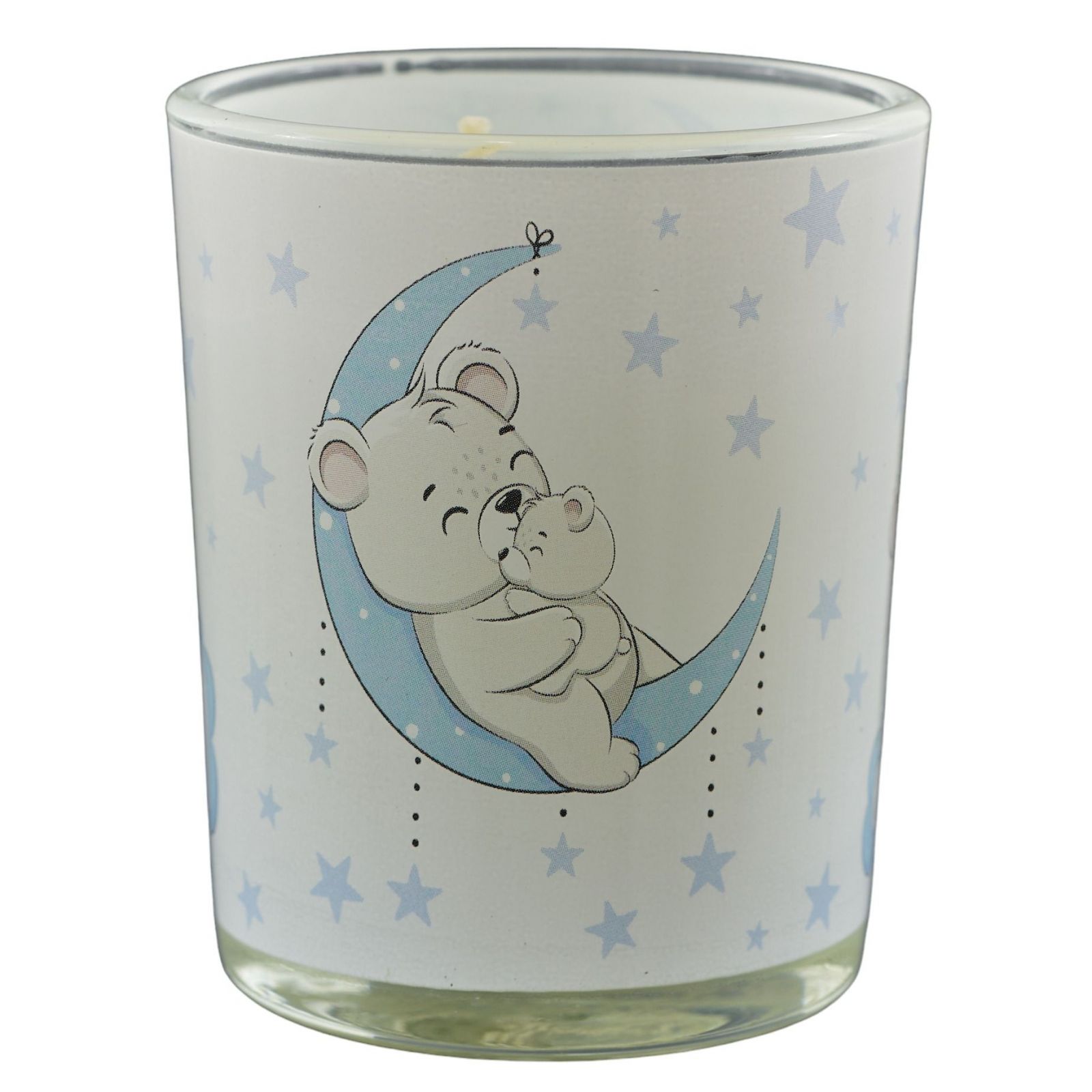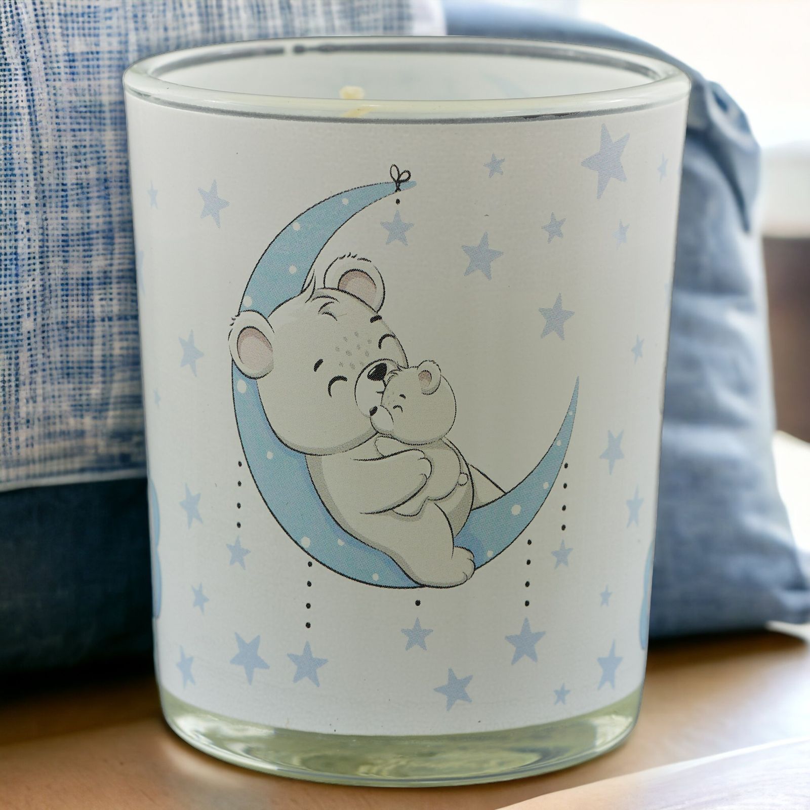 Regalare una bomboniera è un modo per ricordare un evento unico ed indimenticabile. Il nostro portacandela decorata con orsetto sulla luna e stelline con dettagli azzurri è il regalo ideale per celebrare un battesimo o il primo compleanno di un maschietto. Il materiale scelto è il vetro e la candela è inclusa nella confezione.