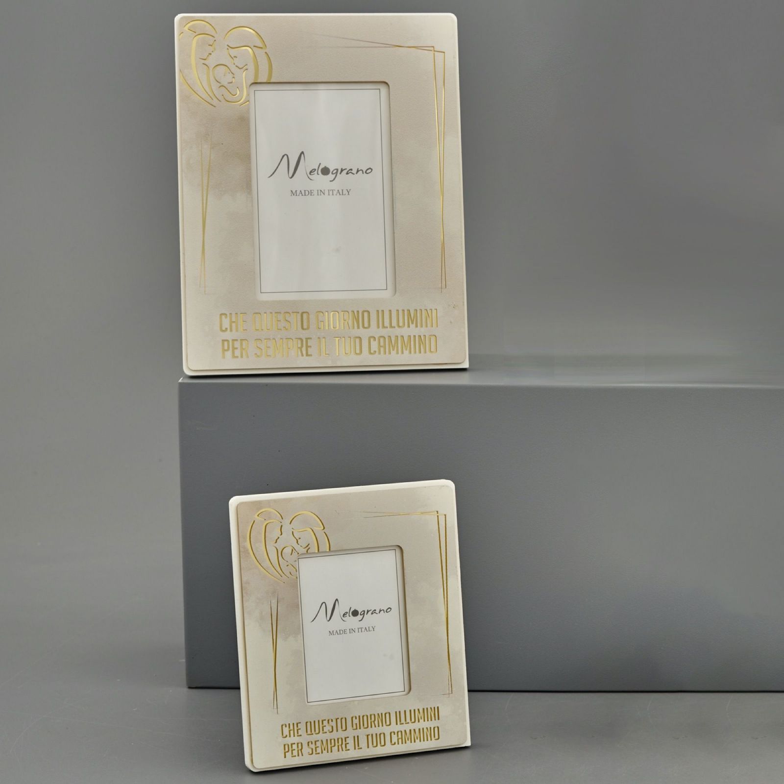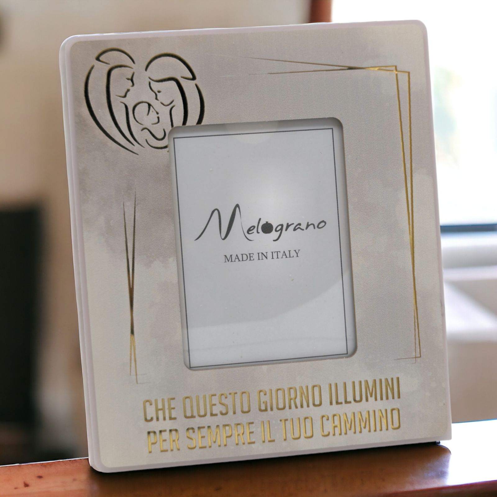 Dona un tocco di originalità al regalo per il tuo battesimo, prima comunione o santa cresima con il bellissimo portafoto con Sacra Famiglia e frase "Che questo giorno illumini per sempre il tuo cammino".