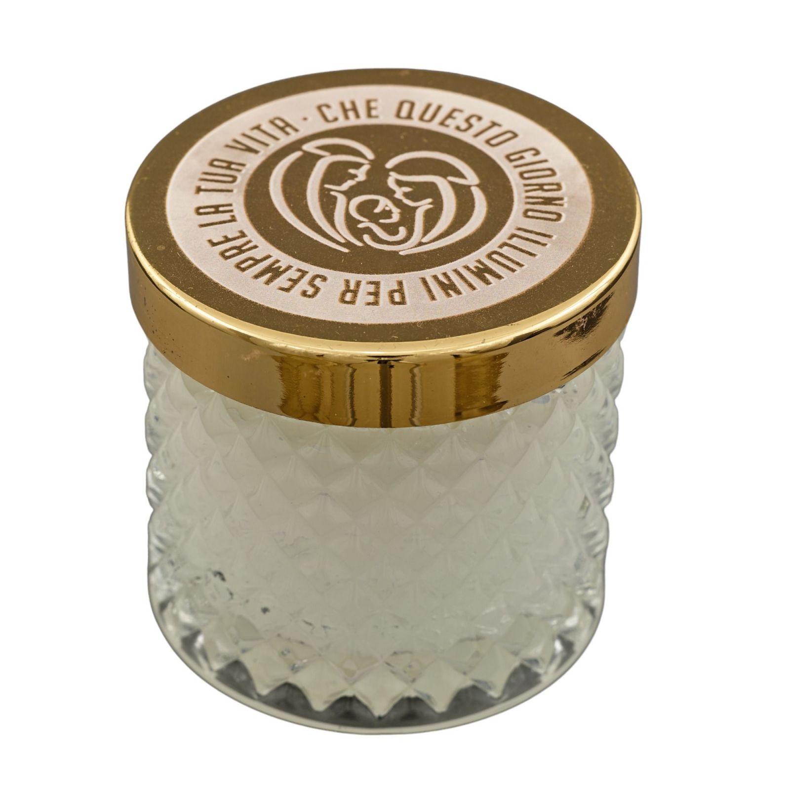 Regala una bomboniera unica e originale per ricordare ai tuoi invitati un momento speciale del tuo bambino. Questo portacandela effetto diamond con tappo dorato è l'idea regalo perfetta per i battesimi, le prime comunioni e le sante cresime. Con una raffigurazione della sacra famiglia e la scritta "Che questo giorno illumi per sempre la tua vita" diventerà un oggetto unico ed irripetibile.