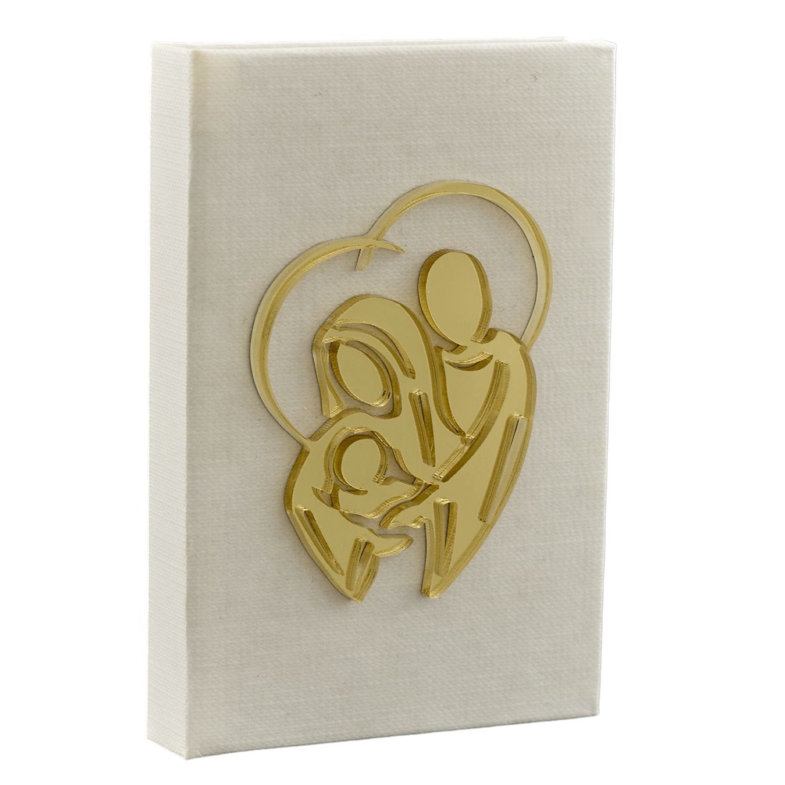 Regala originali bomboniere per Battesimo, Prima Comunione e Santa Cresima con questa particolare Vangelo con sacra famiglia in plexiglass color oro. L'opera d'arte è realizzata con materiali di alta qualità e misura 7,4X11X2cm. Il colore bianco e oro, con la simbolo sacra famiglia in plexiglass, rende questa bomboniera unica nel suo genere. Completa di scatola regalo, questa bomboniera è un dono speciale per i tuoi invitati. Regalare un Vangelo con sacra famiglia in plexiglass color oro significa donare un oggetto esclusivo, realizzato con cura e attenzione ai dettagli.