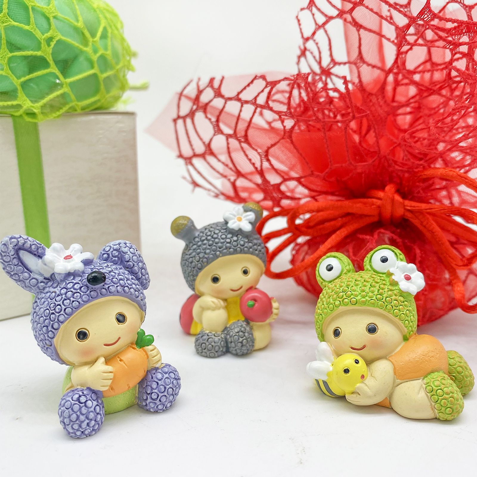 Realizzata in resina di alta qualità, questa bomboniera ha delle dimensioni di 2x3x3.5 CM e è assorita in vari colori pastello, perfetti per ogni tipo di celebrazione. I dettagli finemente lavorati e i colori vivaci renderanno questa statuina un ricordo indimenticabile per tutti gli invitati alla tua festa di nascita.