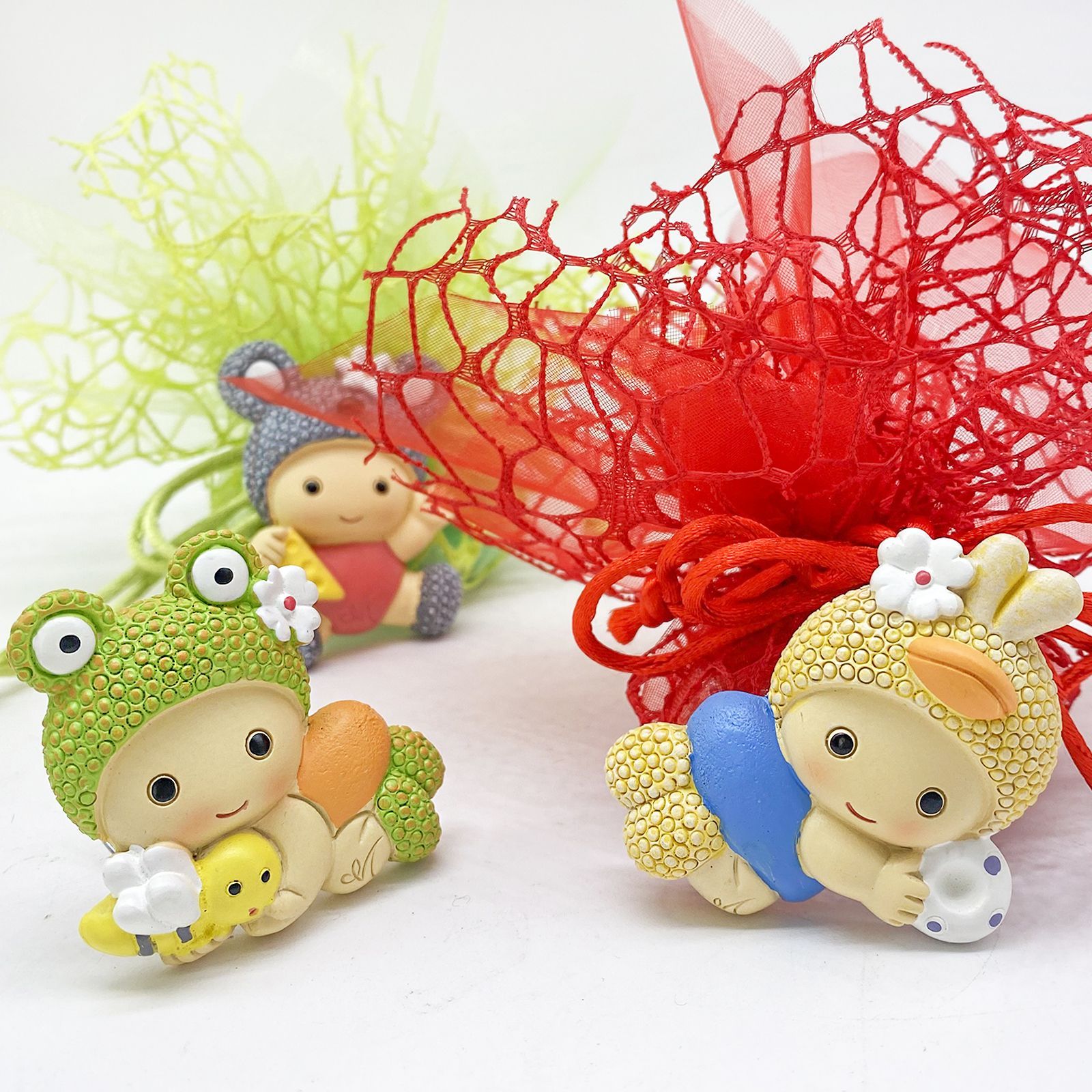 Con i suoi incantevoli colori pastello, questo magnete diventa un simbolo di dolcezza e tenerezza. Assortito in diversi soggetti dedicate a neonati maschi o femmine, creando un gadget che emana amore e gioia adatto a ogni occasione speciale legata alla nascita.