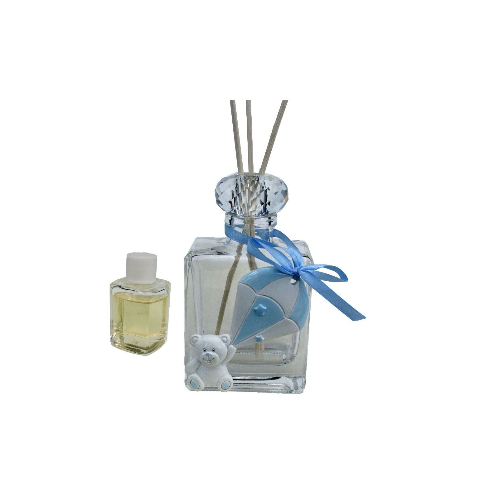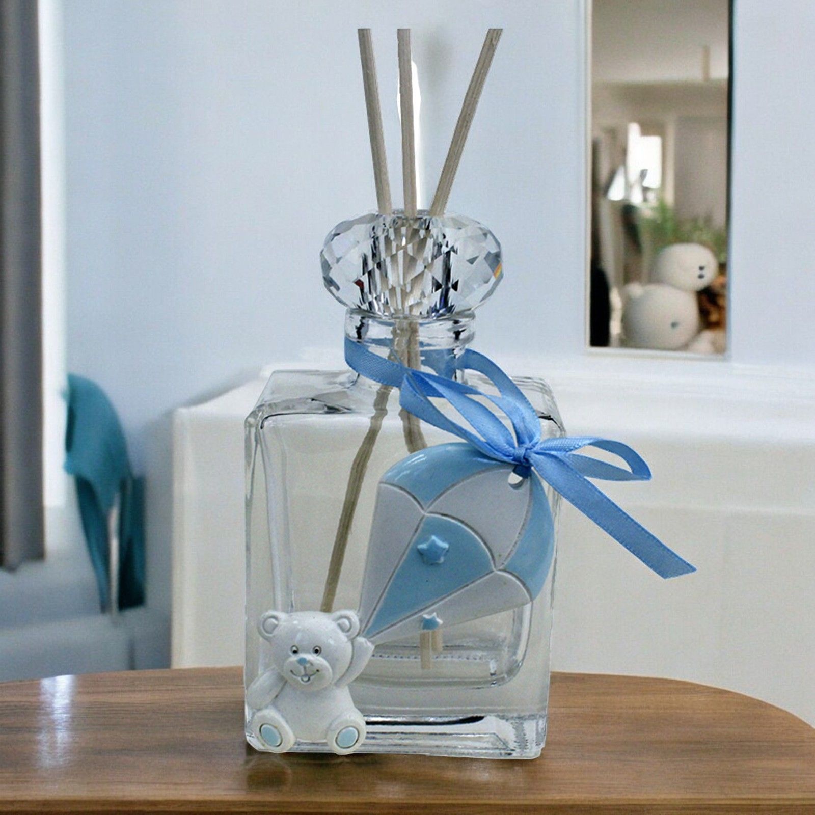 Il nostro diffusore essenza è il complemento perfetto per celebrare questo evento speciale. Con un adorabile orsetto dai dettagli azzurri che tiene in mano una mongolfiera decorata con un fiocco celeste, questo diffusore è un omaggio elegante e ricco di significato.