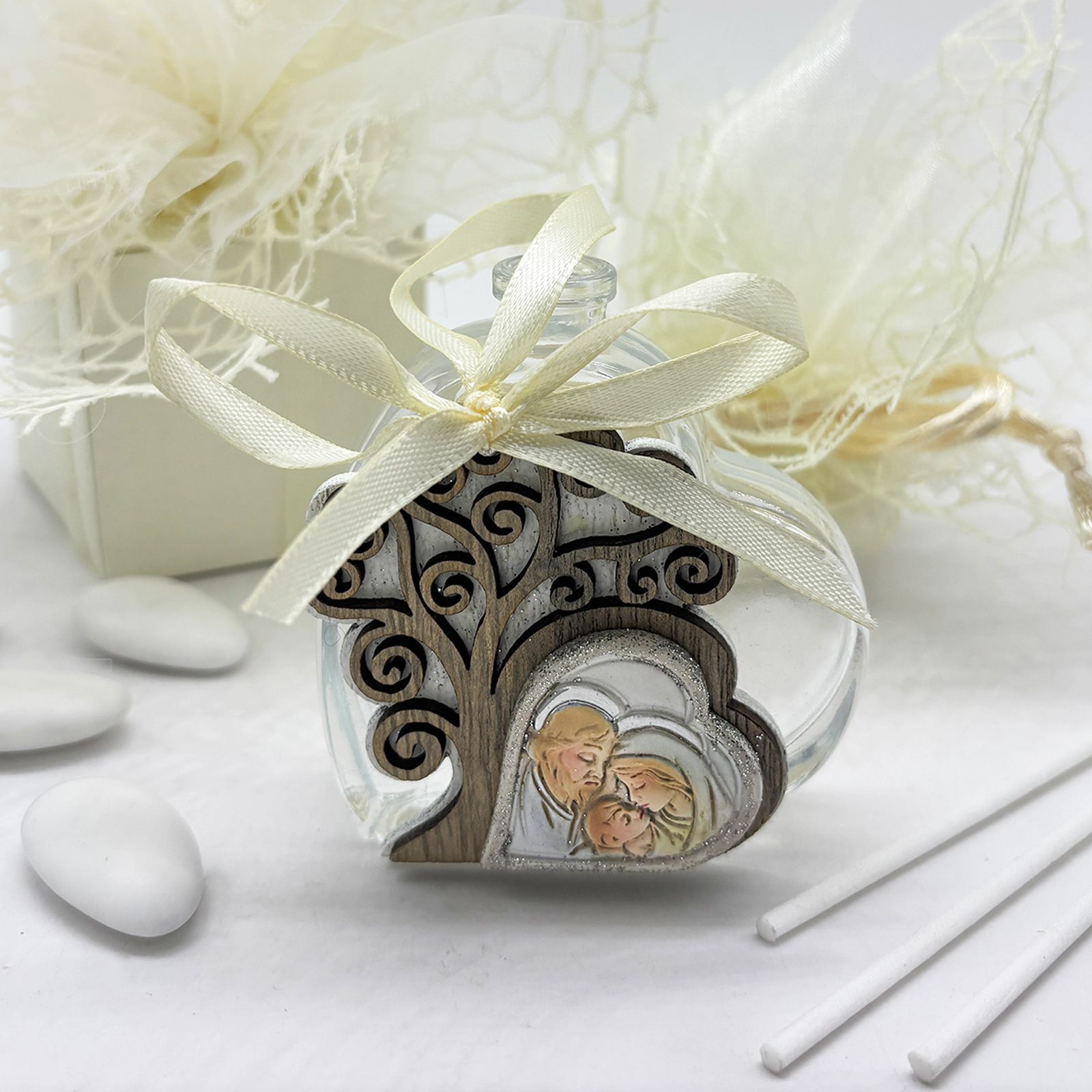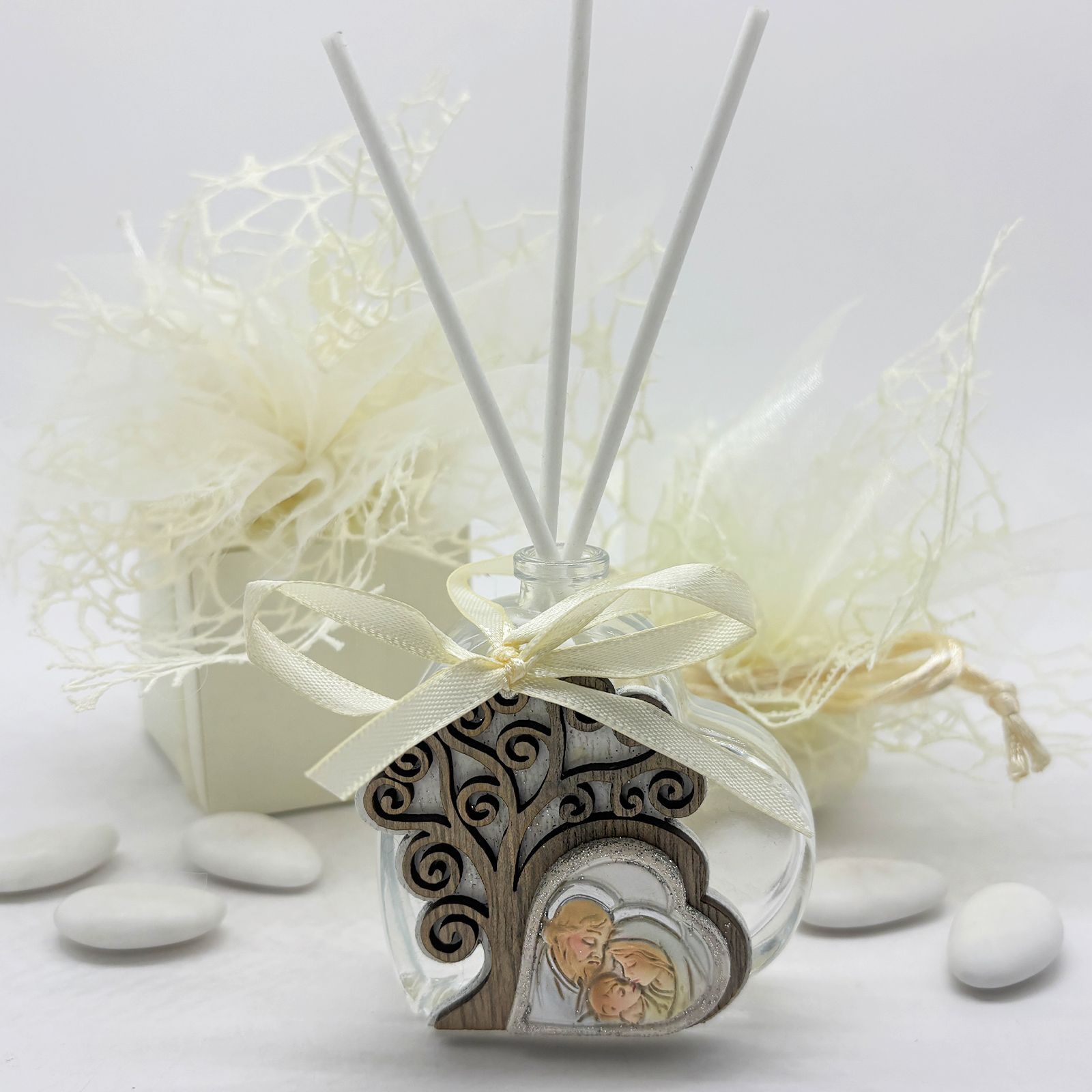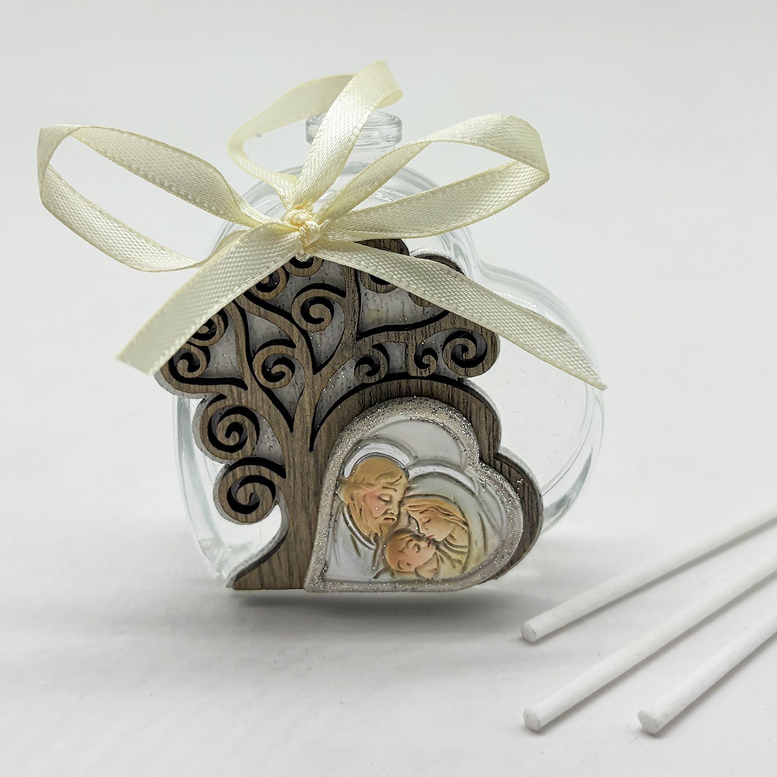 L'albero della vita simboleggia la crescita e la connessione, mentre il cuoricino con la Sacra Famiglia riporta alla mente l'importanza delle relazioni. In omaggio, sono incluse tre bachette spargiessenza per rilasciare fragranze avvolgenti.