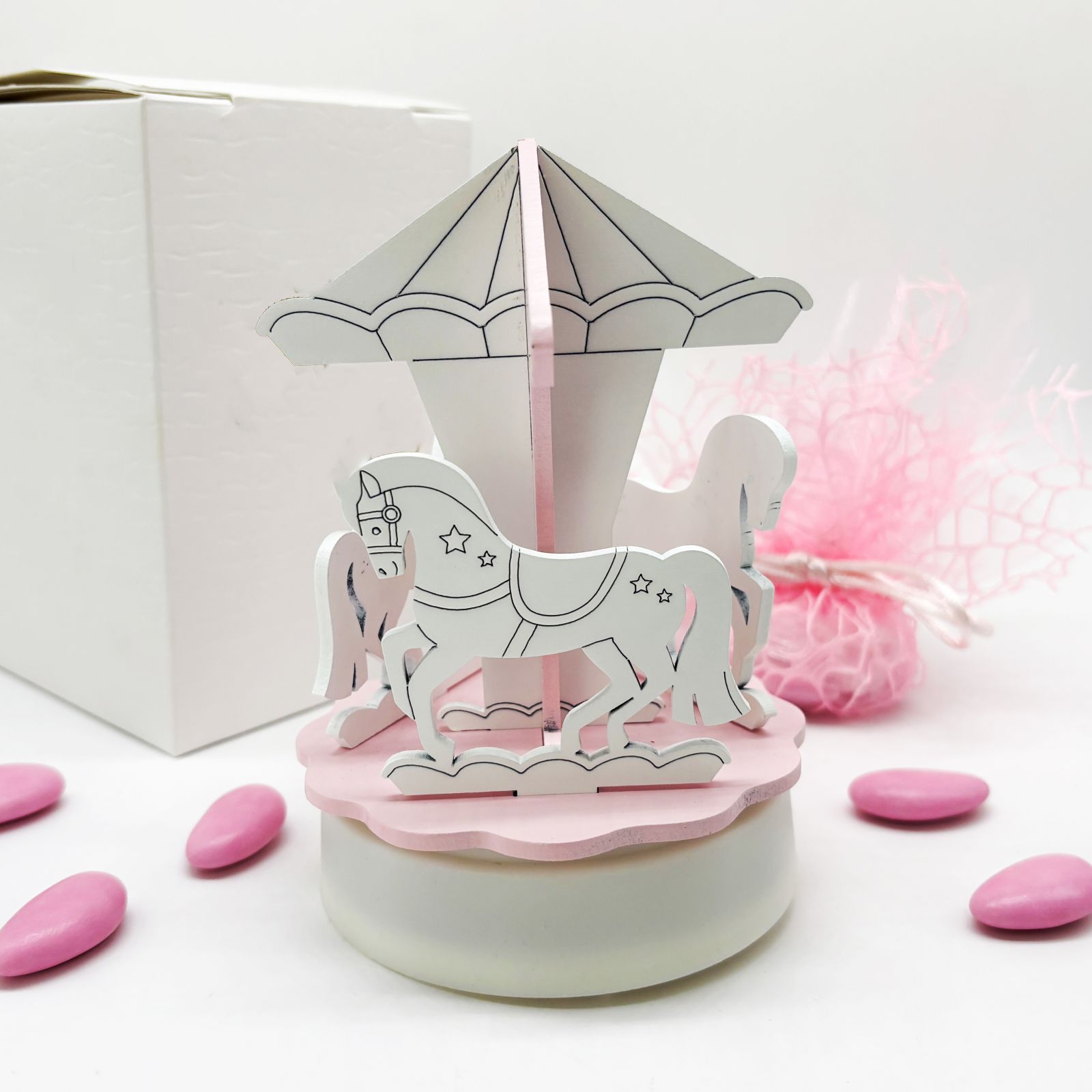 Scegliendo il carillon con giostrina, doni un oggetto prezioso e originale. Perfetto per chi cerca idee particolari o una bomboniera unica, rappresenta gratitudine e amore, con materiali di alta qualità che uniscono estetica e durata.