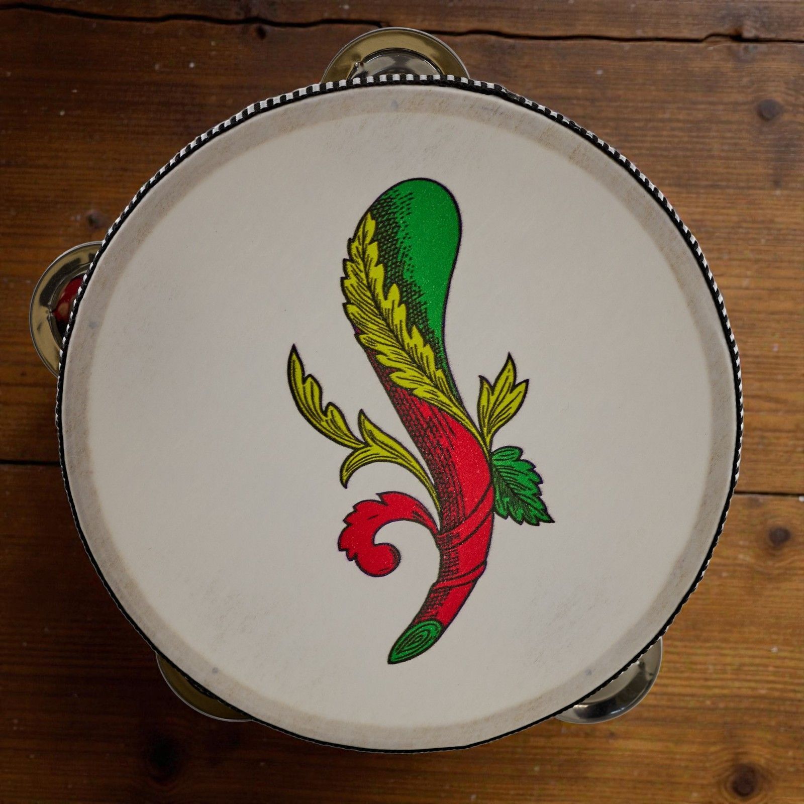 Un simbolo di fortuna e divertimento prende forma in questo tamburello decorato con l’Asso di Bastoni delle carte napoletane, perfetto come bomboniera originale per festeggiare compleanni speciali, diciottesimi o eventi importanti come i 30, 40 e 50 anni, unendo tradizione e stile in un regalo unico per gli invitati.