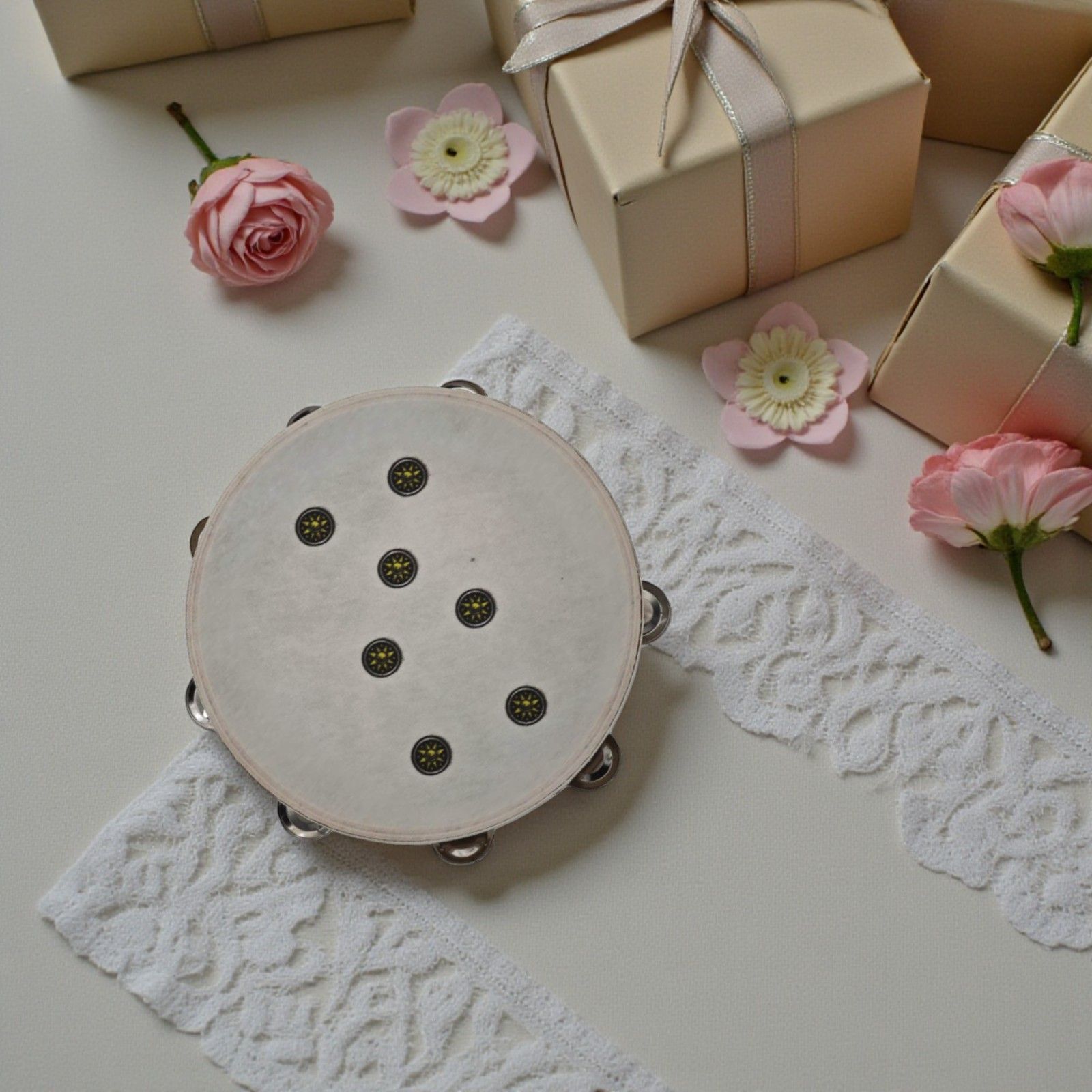 Realizzata in un elegante colore avorio con delicati toni pastello, questa bomboniera si adatta perfettamente a qualsiasi tema di festa. Che tu stia festeggiando i tuoi 30 anni, 40 anni o 50 anni, questo tamburello rappresenta un modo originale per stupire i tuoi invitati e offrire loro un ricordo speciale. Ogni dettaglio è curato con passione per rendere il tuo evento ancora più speciale.