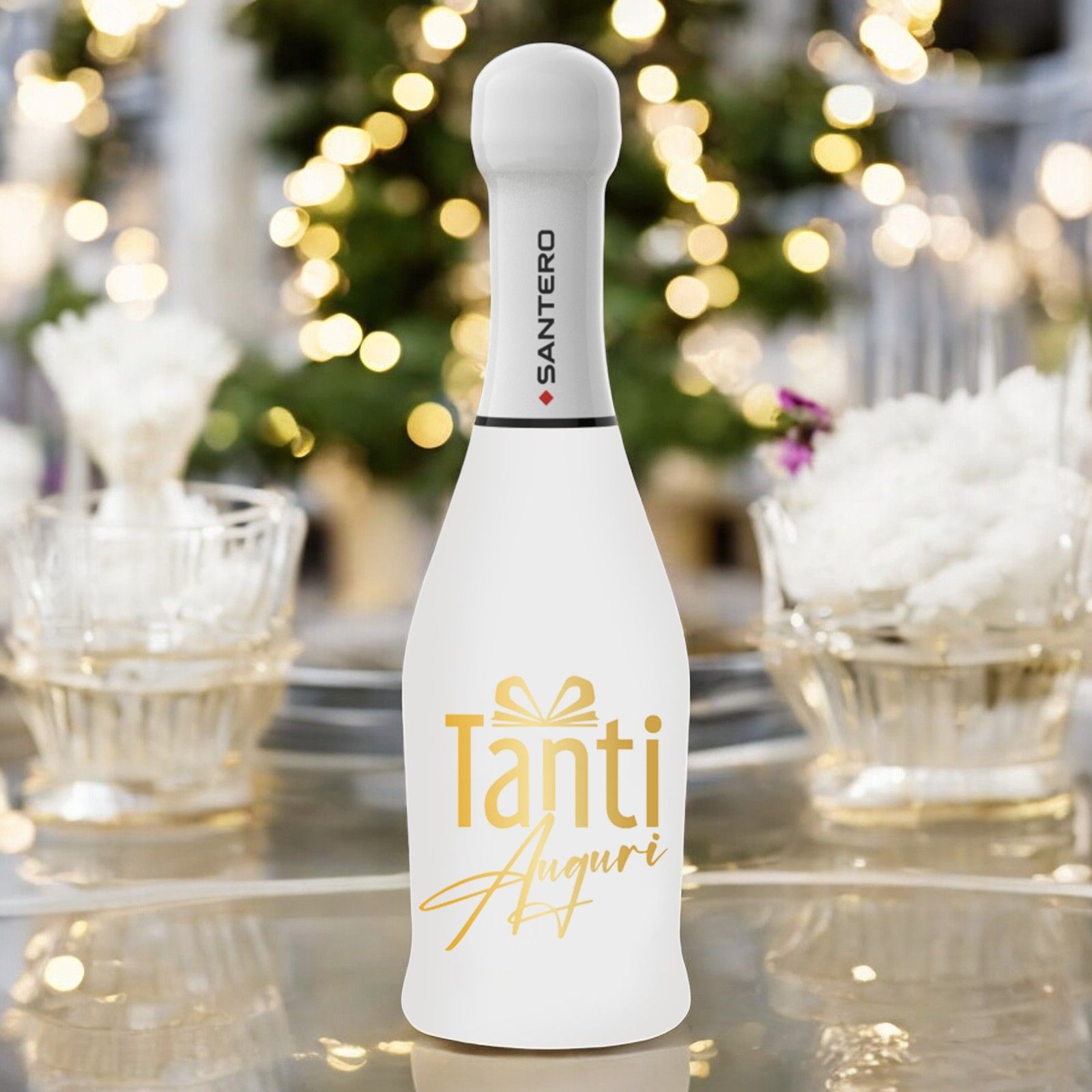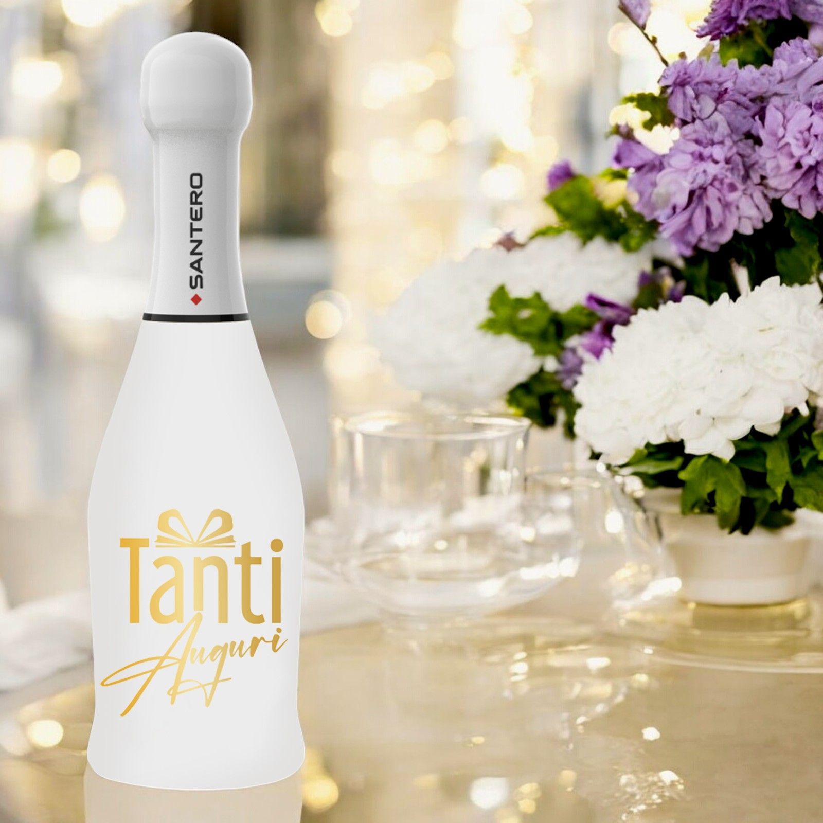 Stai cercando un'idea originale ed economica per le tue bomboniere di compleanno? La Bottiglia Spumante Extra Dry White Santero è la scelta perfetta per te!