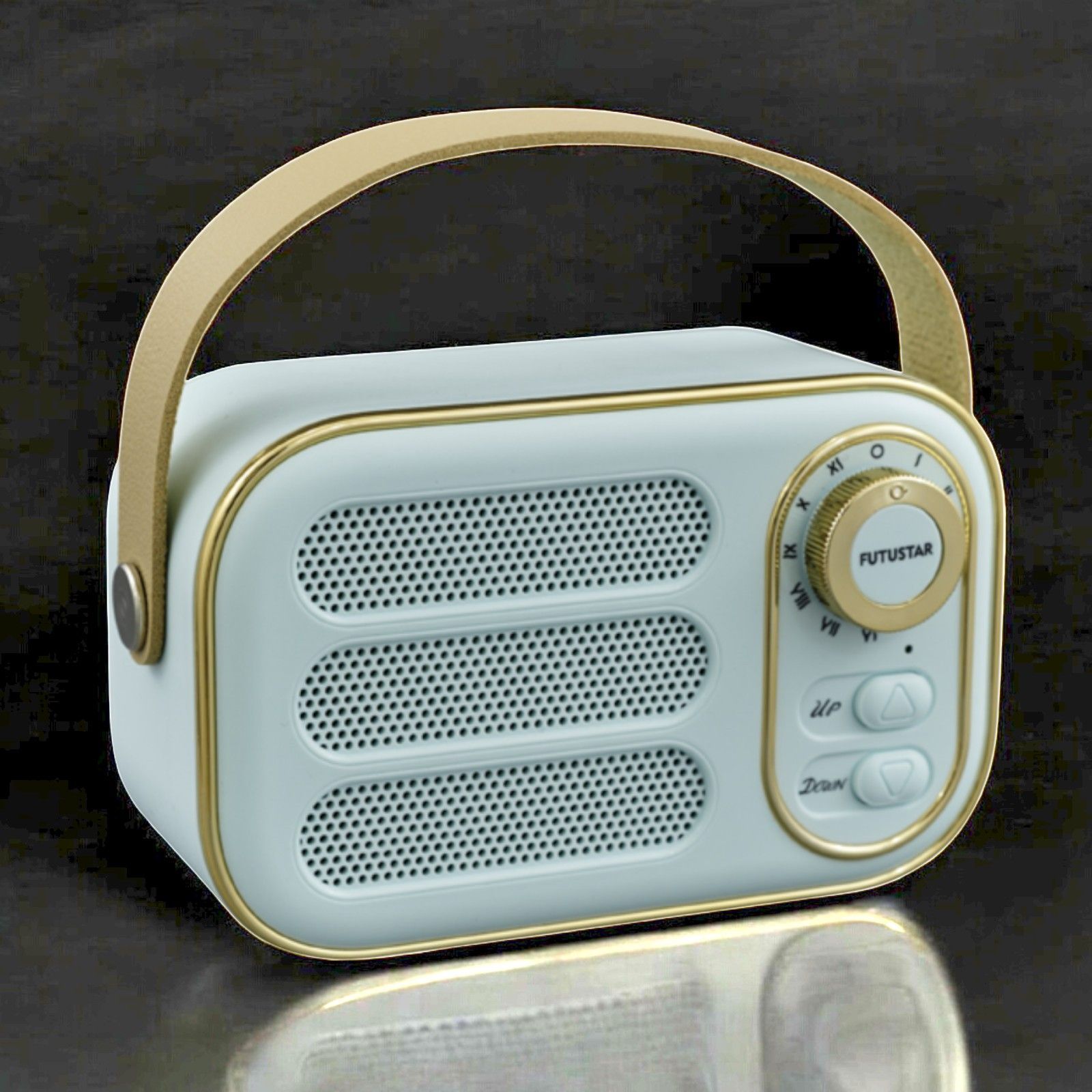 Per un evento speciale come una comunione, un battesimo, una cresima o un compleanno, regala ai tuoi ospiti qualcosa di unico e utile come questa bomboniera Radio Retro con Bluetooth. Con la sua elegante colorazione celeste e dettagli in oro, si adatta perfettamente a qualsiasi tipo di allestimento.