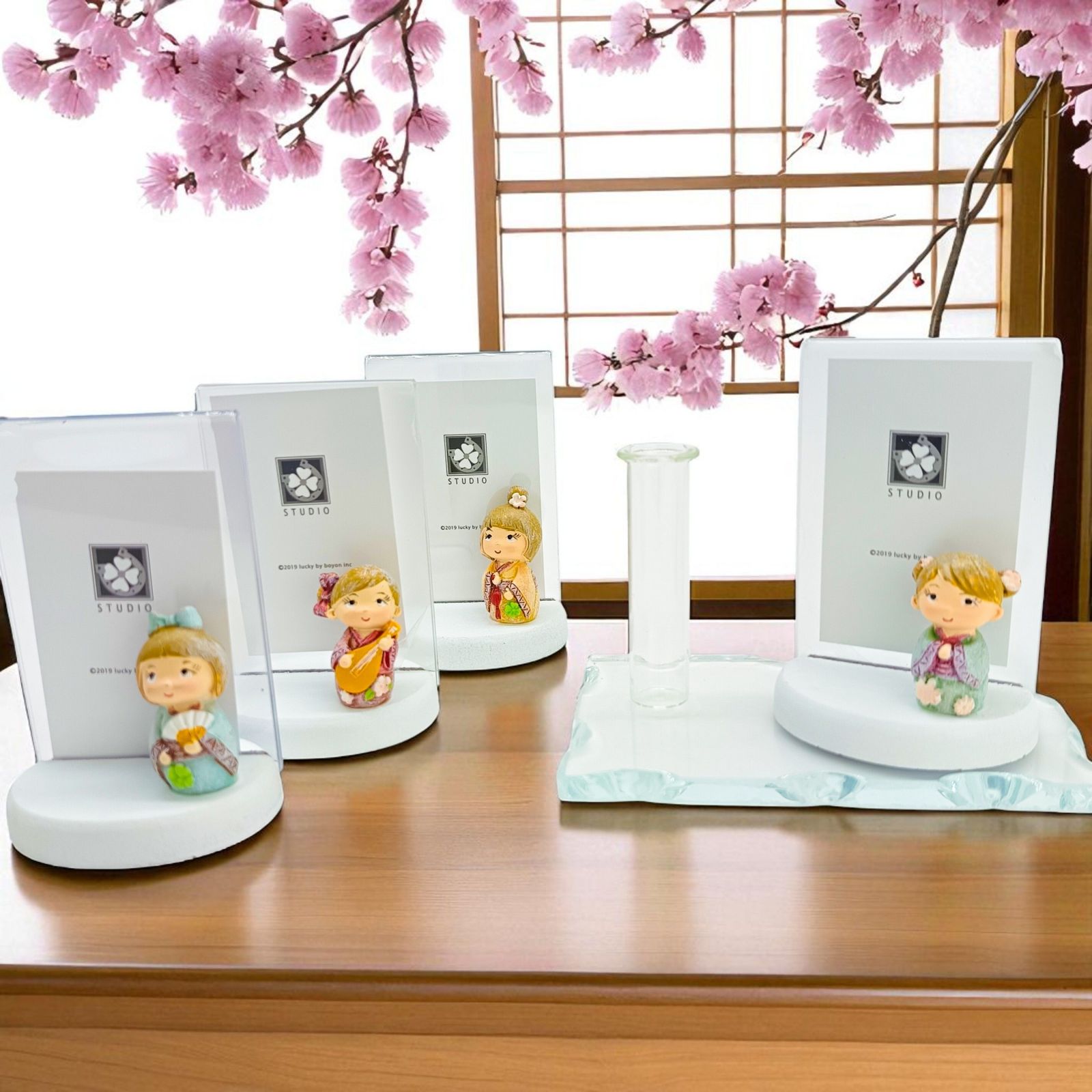 Sorprendi i tuoi invitati con una bomboniera che unisce eleganza e utilità. La base in vetro con cornice portafoto e la dolce giapponesina è il dettaglio perfetto per rendere speciale il tuo battesimo, comunione o compleanno. Completa di fiala portaprofumo, può trasformarsi in porta penne o vasetto monofiore: un oggetto originale e versatile.