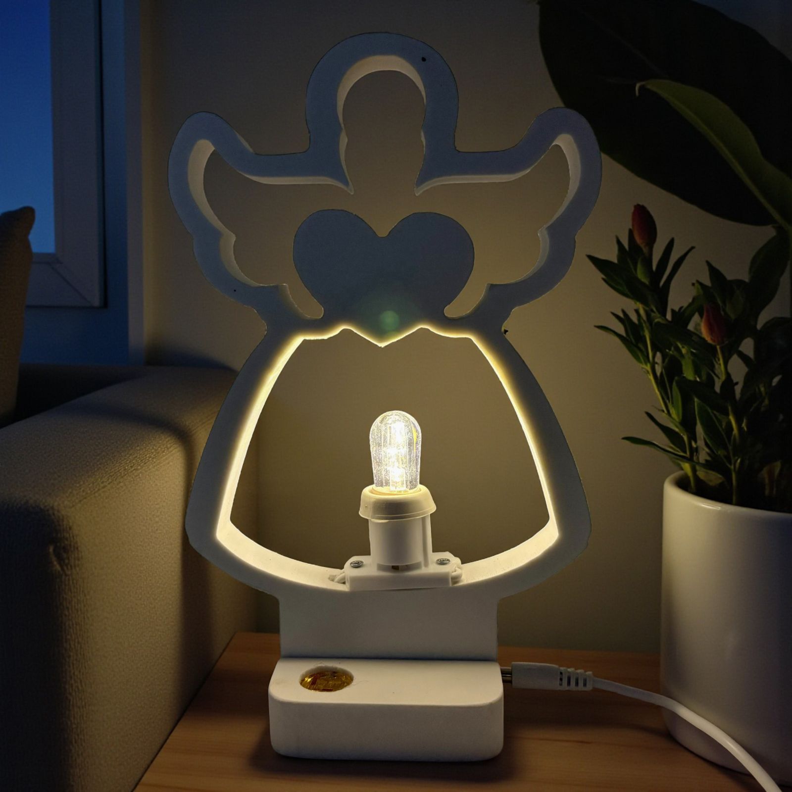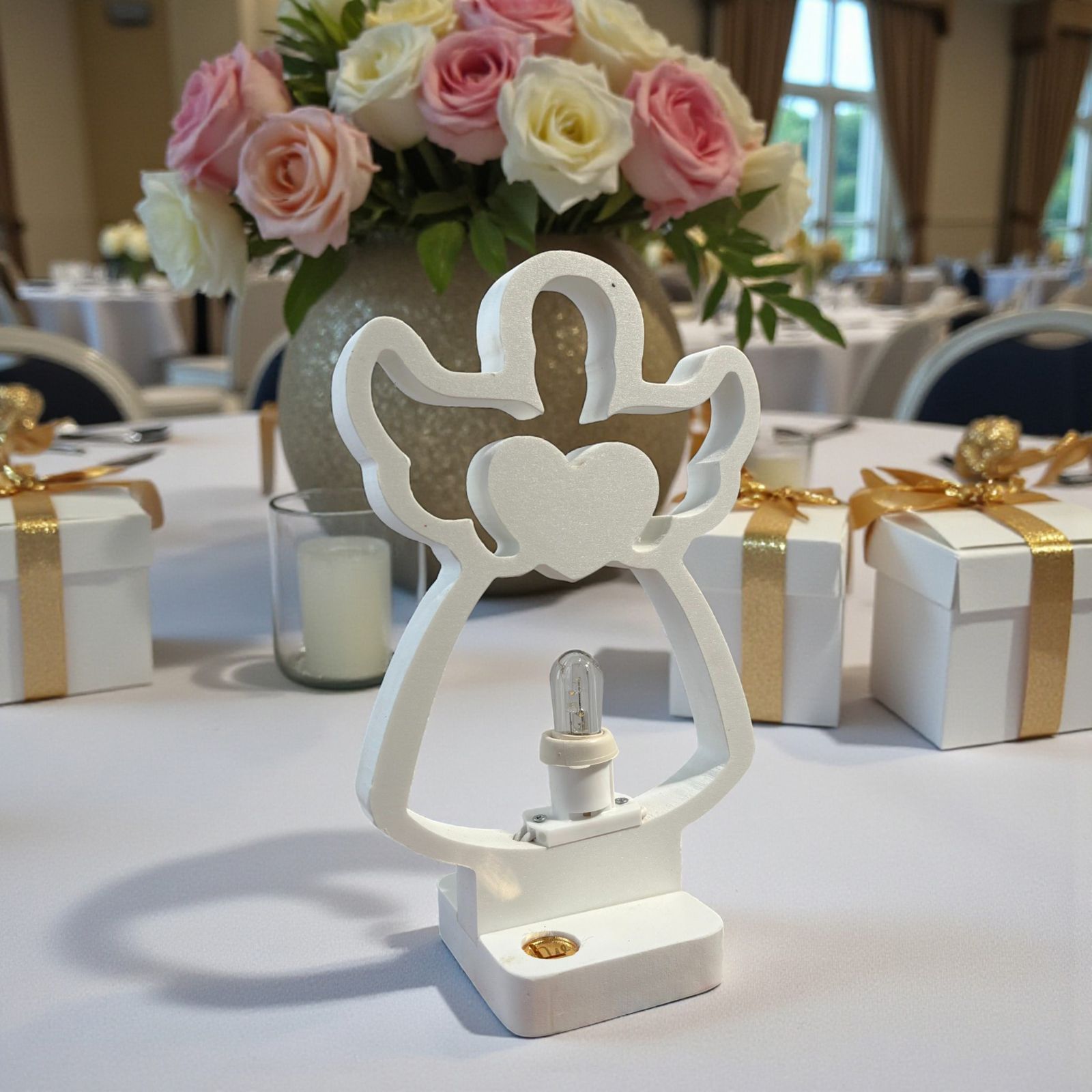 Realizzata in Forex bianco di alta qualità, la lampada con luce calda si adatta perfettamente a qualsiasi ambiente, rendendola un'idea regalo versatile e raffinata. La delicata forma di angelo con cuore porta un messaggio di amore e serenità, rendendola una scelta ideale per festeggiare momenti indimenticabili. Puoi anche personalizzare l'atmosfera scegliendo il colore della lampadina, così da renderla unica e speciale.