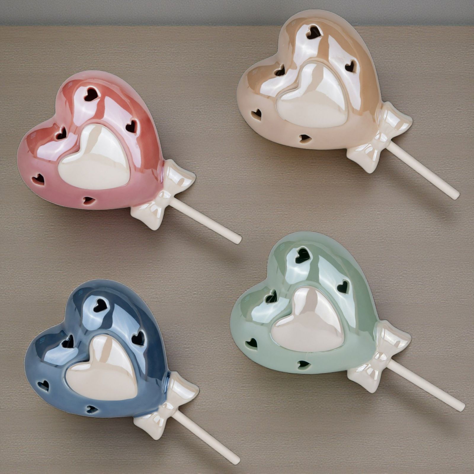 Realizzata in porcellana lucida e aassortitain quattro deliziosi colori assortiti: rosa, blu, tiffany e tortora, questa bomboniera è ideale per ogni occasione. Il suo design elegante, adornato con un fiocchetto a pois e cuori traforati, la rende un'idea originale e economica per chi cerca idee bomboniere battesimo o bomboniere comunione. Trasmetti il tuo affetto con un pensiero che rimarrà nel cuore di tutti.