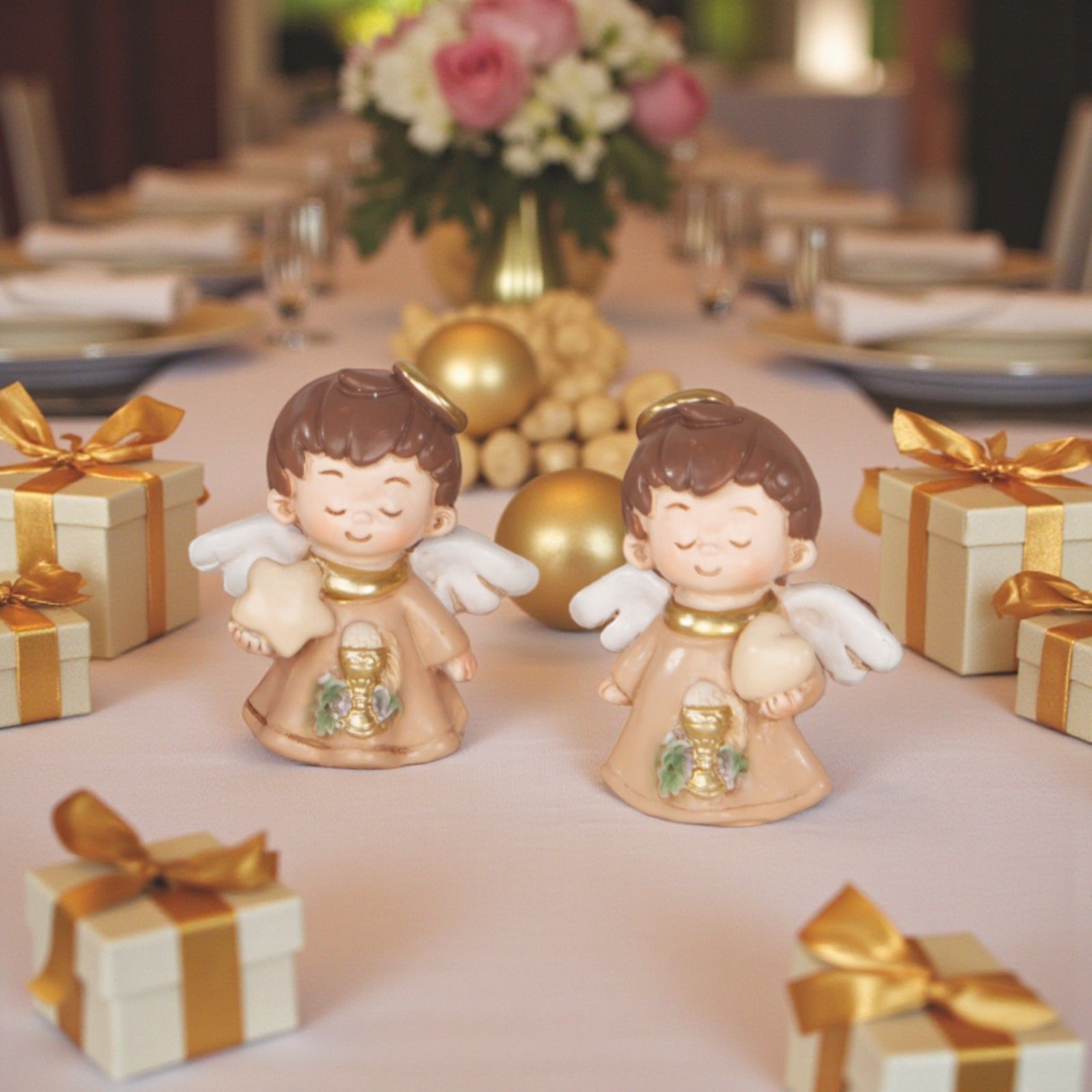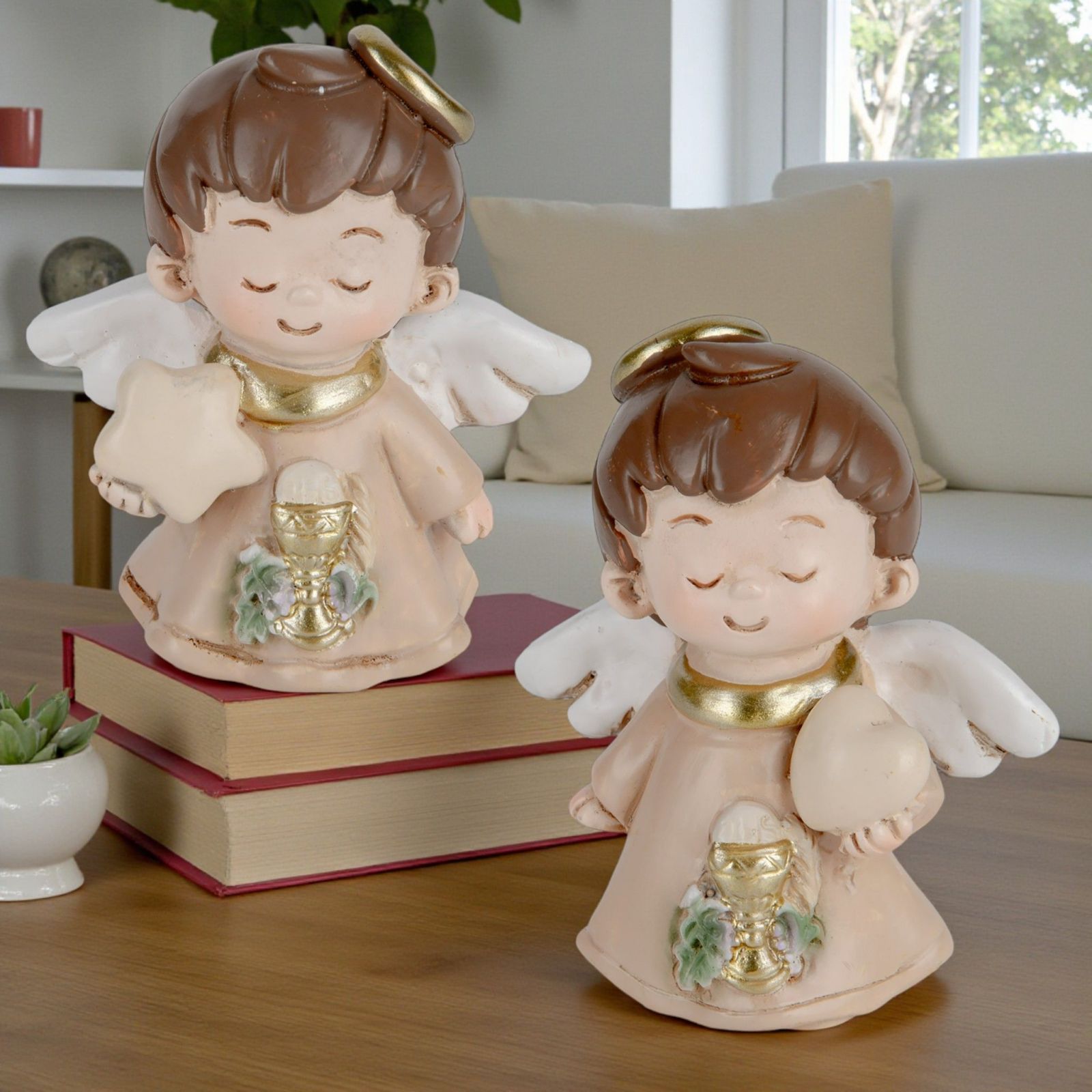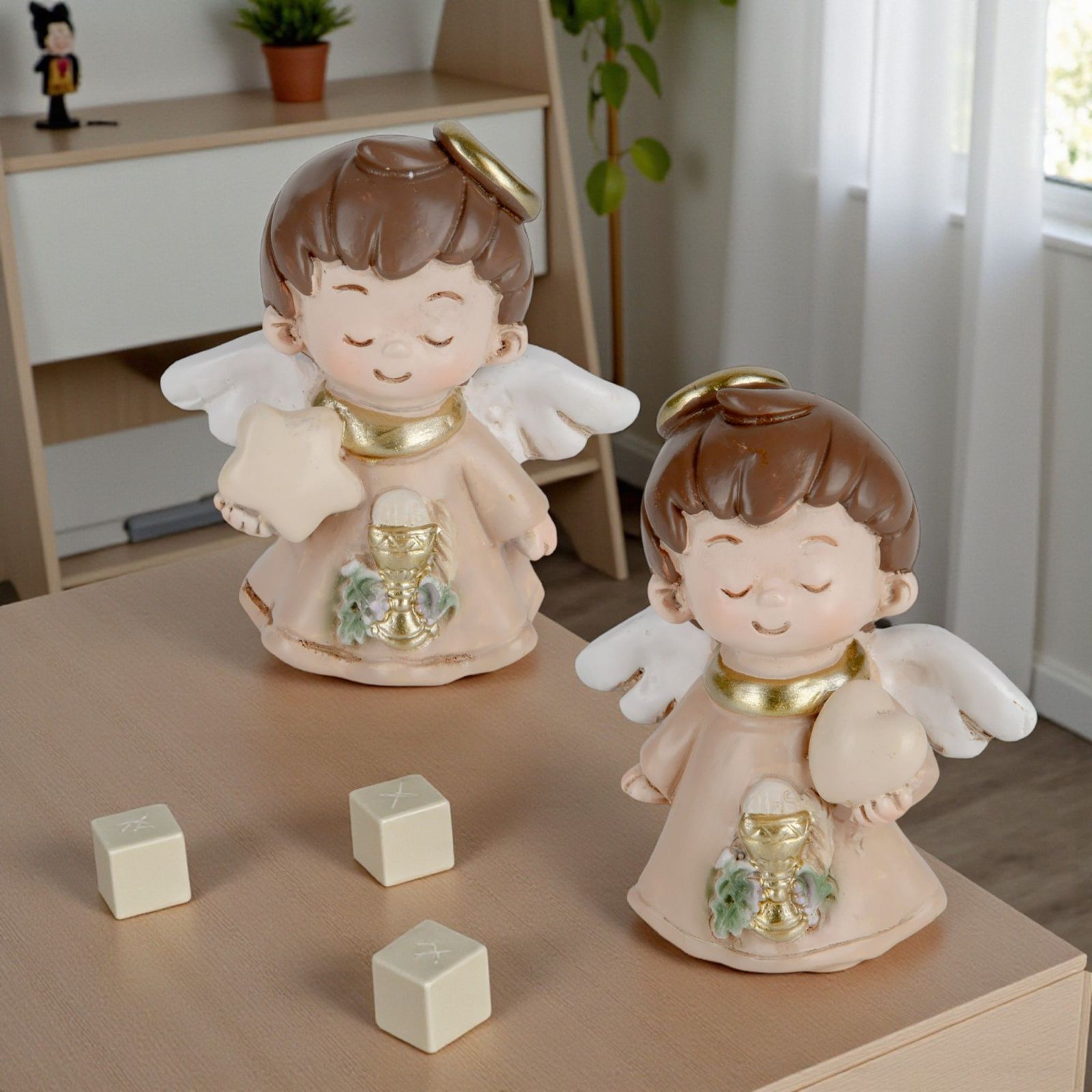 Realizzata in resina di alta qualità, questa bomboniera originale si presenta in un elegante colore tortora bianco, arricchito da dettagli dorati. Assortito in due modelli , ogni angioletto porta con sé una storia unica, rendendo ogni scelta speciale e personale. È una delle idee bomboniere comunione che lascerà un'impronta nel cuore di chi la riceve.