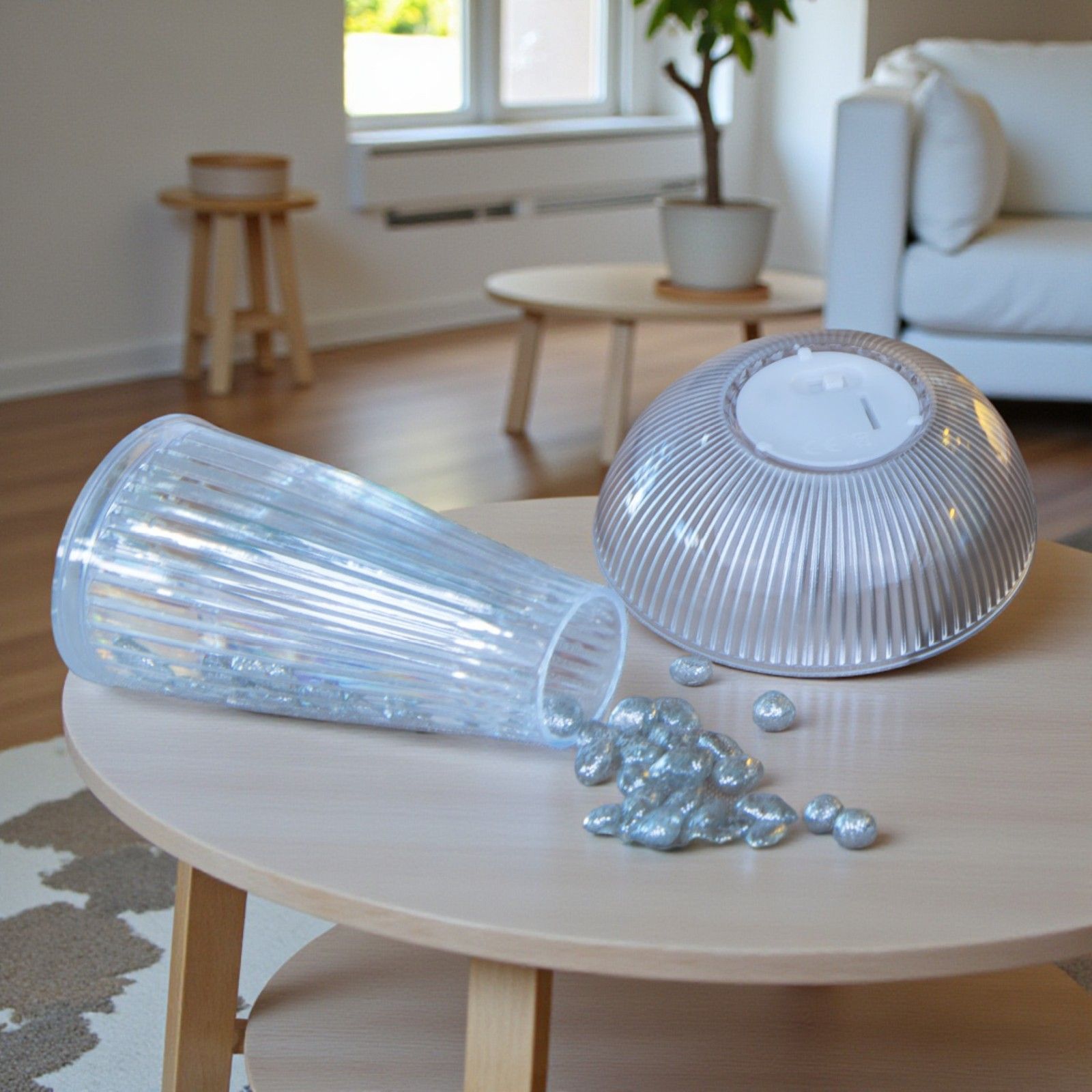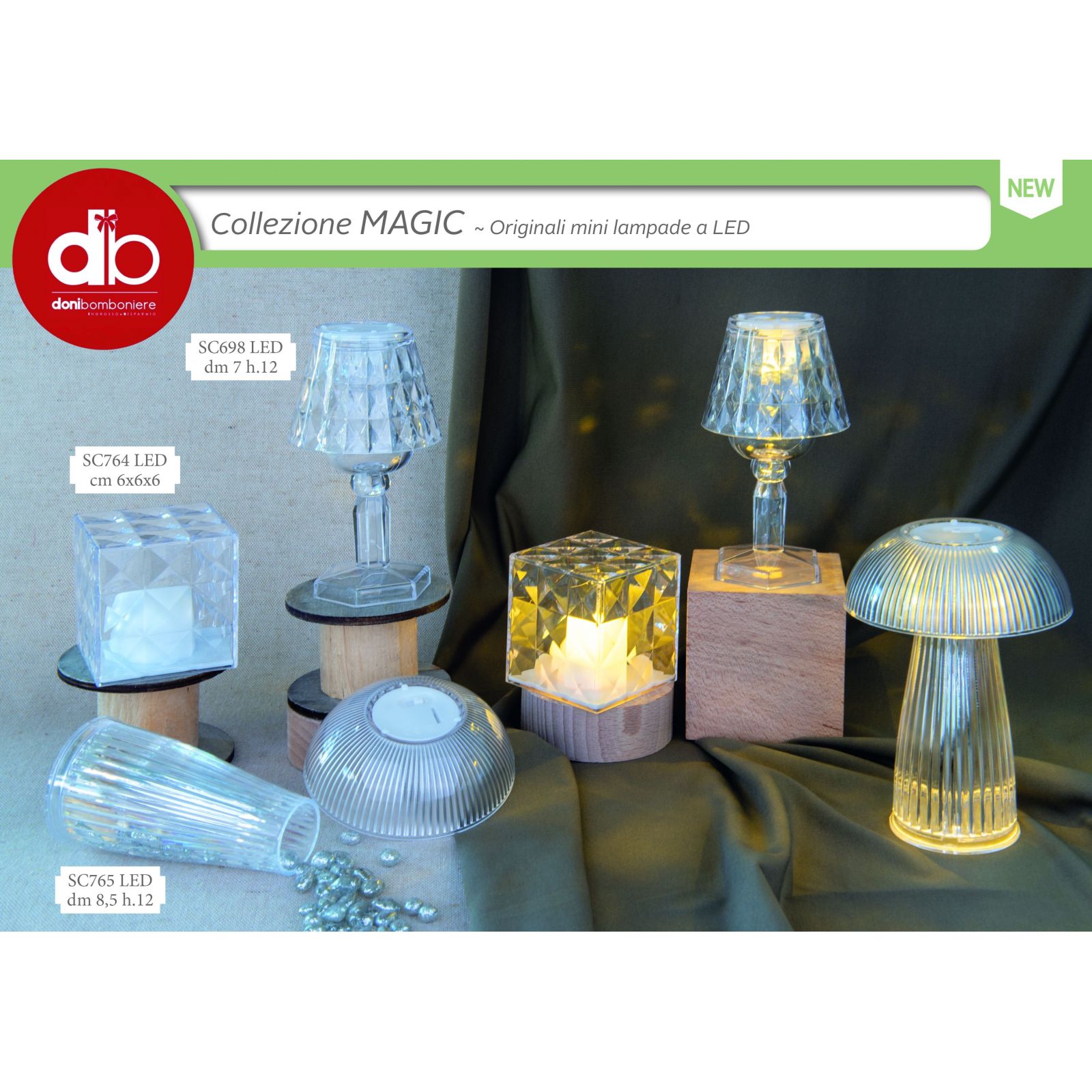 Realizzata in plexiglass trasparente, questa lampada offre un gioco di luci unico grazie alla superficie rigata, creando un’atmosfera calda e accogliente. Un’idea perfetta per chi cerca bomboniere economiche senza rinunciare a stile e raffinatezza.