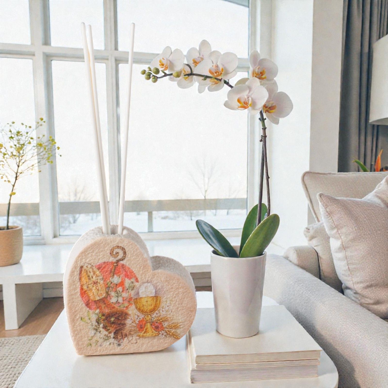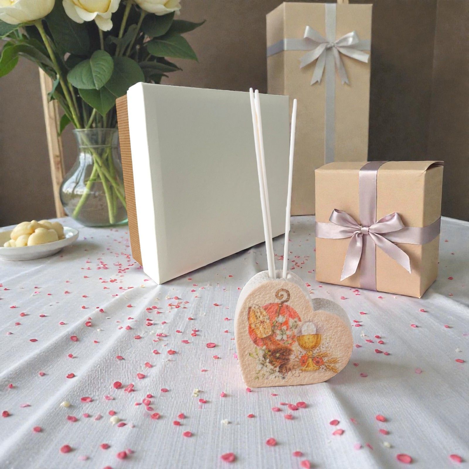 Scopri la dolcezza e l'eleganza del nostro profumatore cuore con calice e mitra, un'idea regalo perfetta per celebrare la comunione e la cresima dei tuoi cari. Questo raffinato diffusore non è solo un oggetto decorativo, ma un simbolo di amore e protezione. La sua forma a cuore rappresenta i legami indissolubili che si creano in occasioni così speciali, facendo di ogni momento un ricordo indelebile.