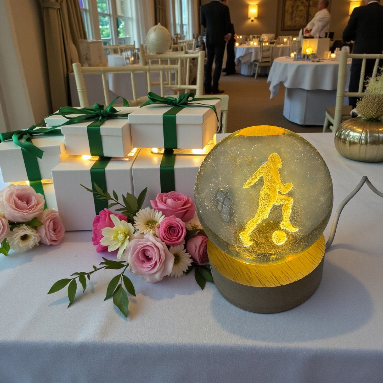 Donare questa bomboniera significa offrire agli invitati un oggetto unico e luminoso, che diventa un simbolo dell’evento. Il modulo led valorizza l’immagine del calciatore, trasformando la sfera in una bomboniera elegante, divertente e ricca di significato per grandi e piccini.