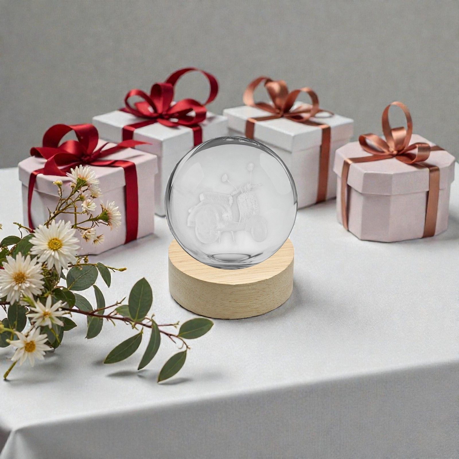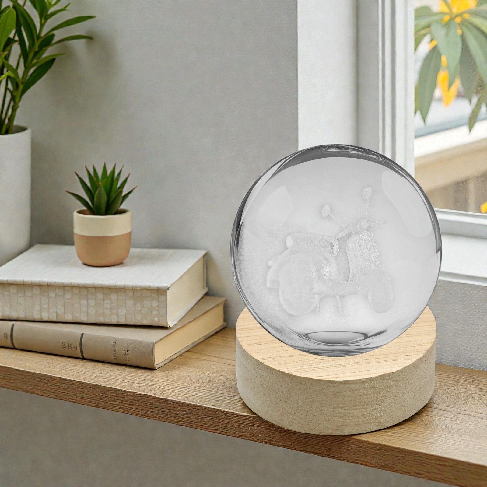 Scopri la magia di una bomboniera unica, pensata per rendere indimenticabili eventi speciali come compleanni, comunioni e cresime. Questa lampada LED a sfera è un omaggio originale e affascinante che porterà un sorriso sul volto di chi la riceve. La sua particolare forma e i materiali di alta qualità, legno e vetro, la rendono un regalo perfetto per ogni giovane amante della libertà e dell'avventura, richiamando il mitico mondo della vespa.
