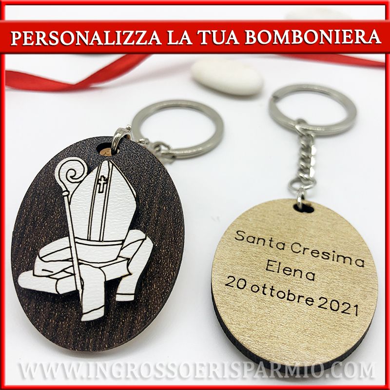 Per un minimo d'ordine di 20 pezzi, RICHIEDI PORTACHIAVI PERSONALIZZATI con nome, data e/o nome evento (Es. "La mia Cresima + Nome" o "Nome + Data").