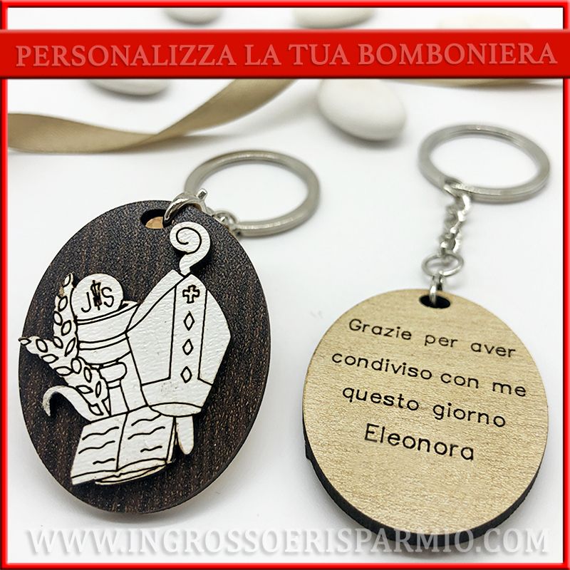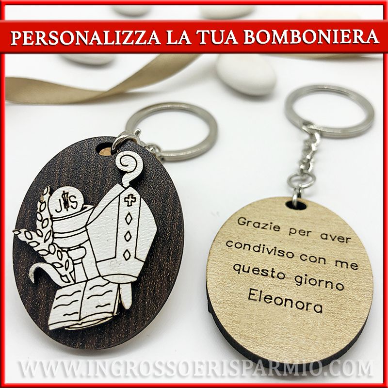Non semplici portachiavi, bensì BOMBONIERE PERSONALIZZATE, non solo con i simboli specifici di entrambi i sacramenti, ma anche con NOME E DATA!