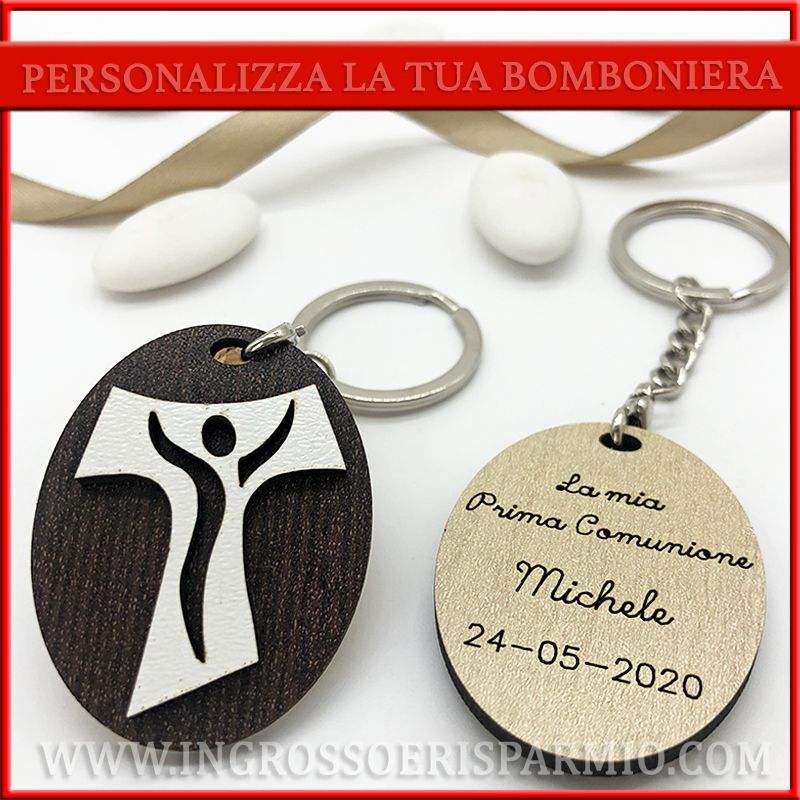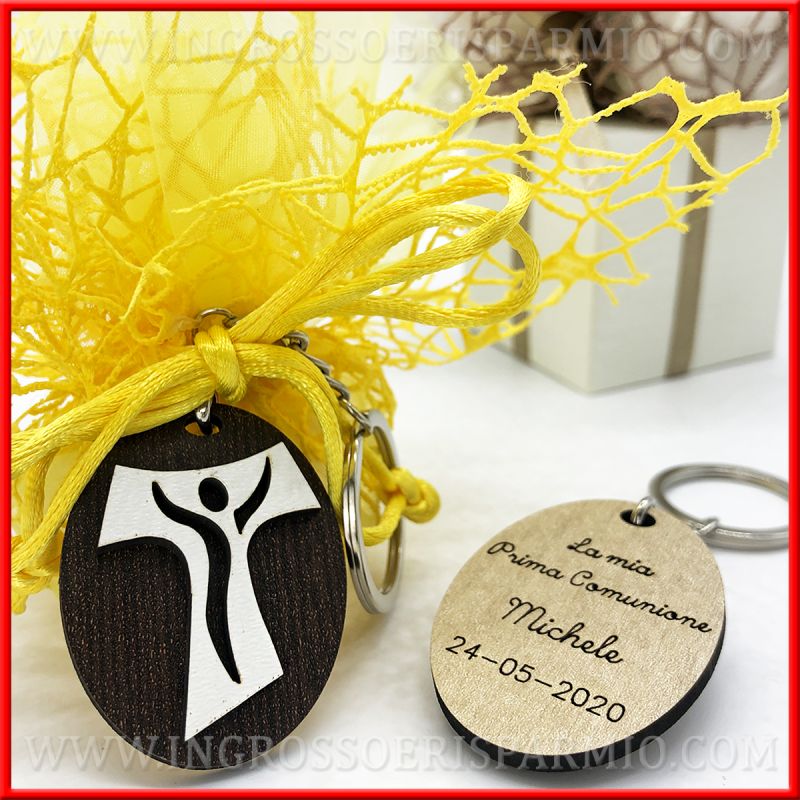 Portachiavi croce tau per bomboniere sacre ed economiche utilizzabili per il sacramento della confessione, comunione e cresima.
