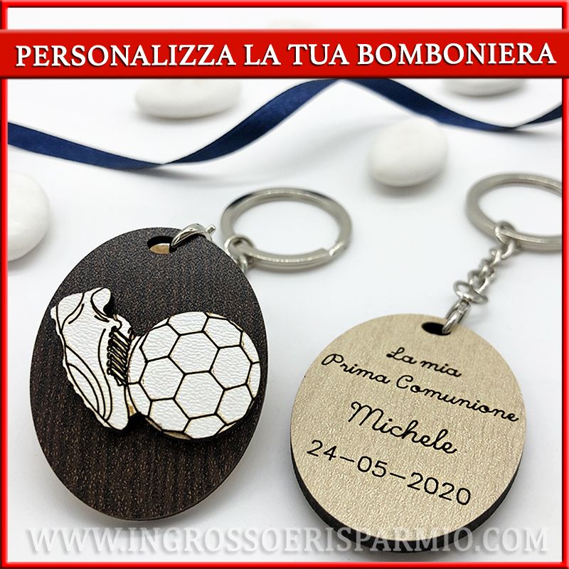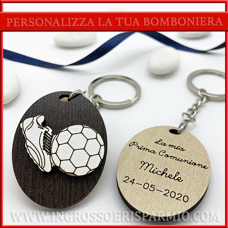 Portachiavi bomboniere calcio comunione e compleanno maschietto/ragazzo.