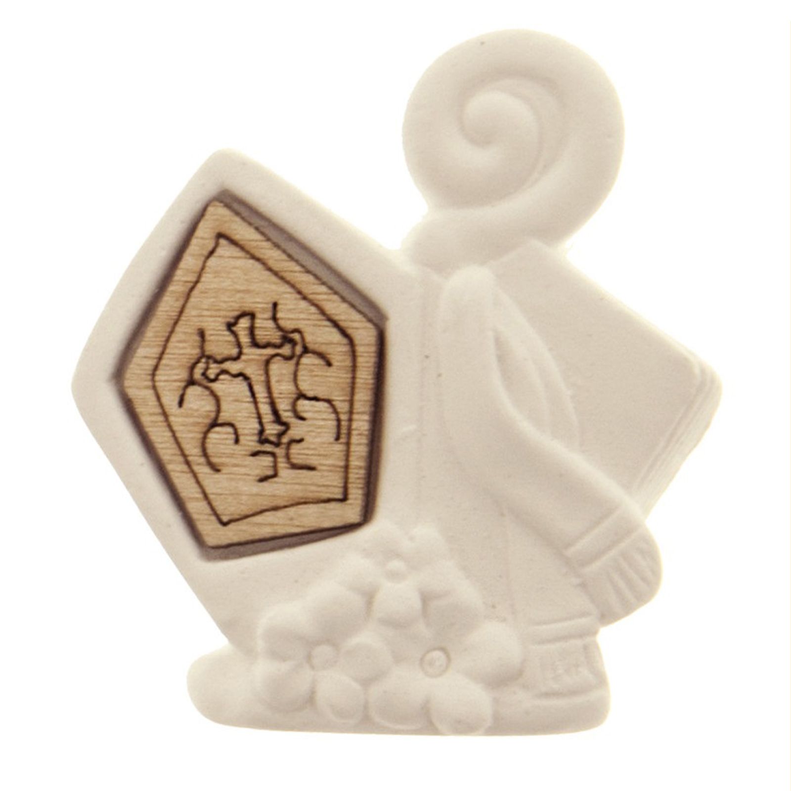 Piccoli gessetti utilizzabili come accessori raffiguranti i simboli della cresima: mitra e pastorale, con applicazione in legno con il simbolo della croce. Il gessetto è decorato nella parte inferiore da piccoli fiori.