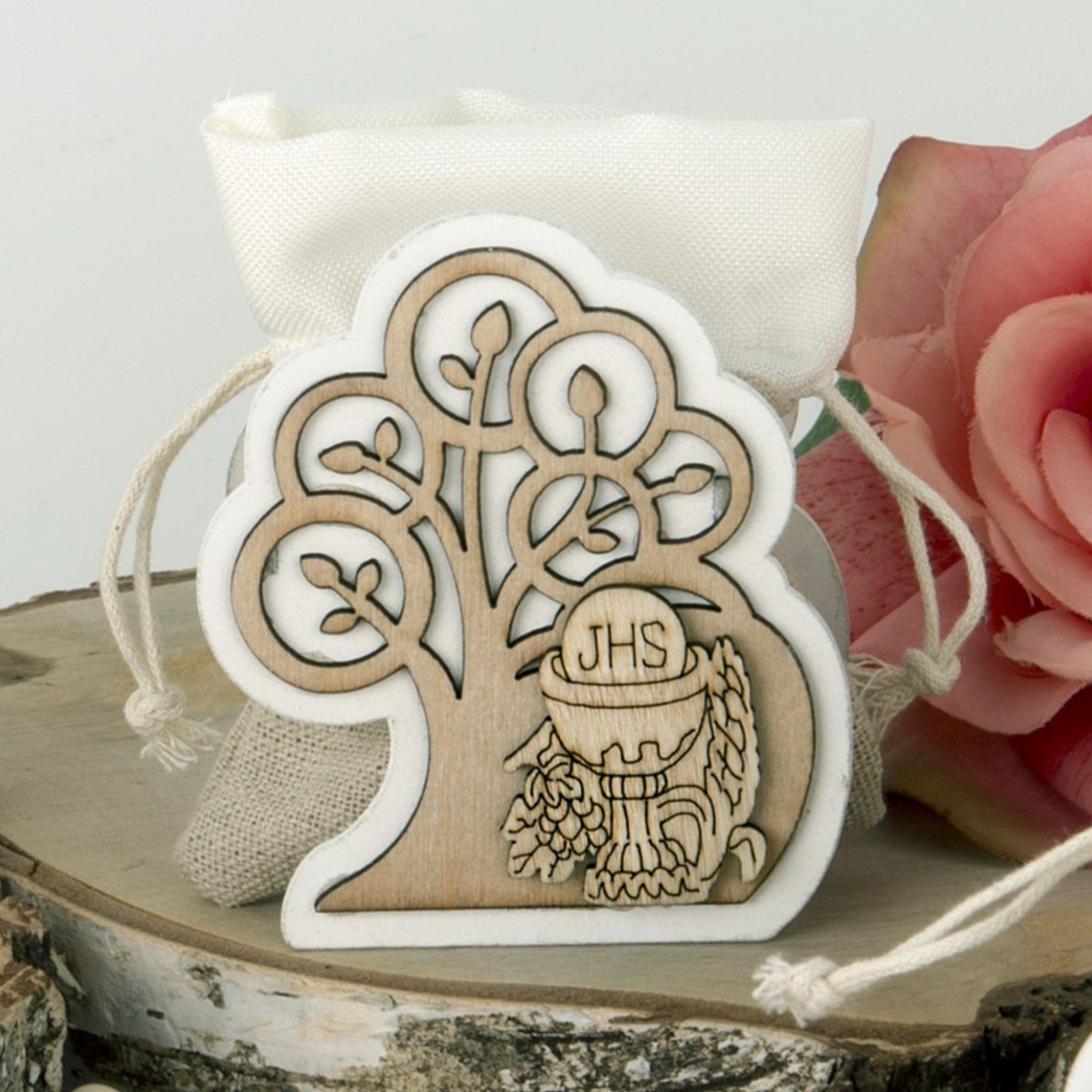 Cerchi un'idea originale per la tua bomboniera Comunione? Invece del solito sacchetto, scegli i nostri portaconfetti in legno disponibili su ingrossoerisparmio.com!