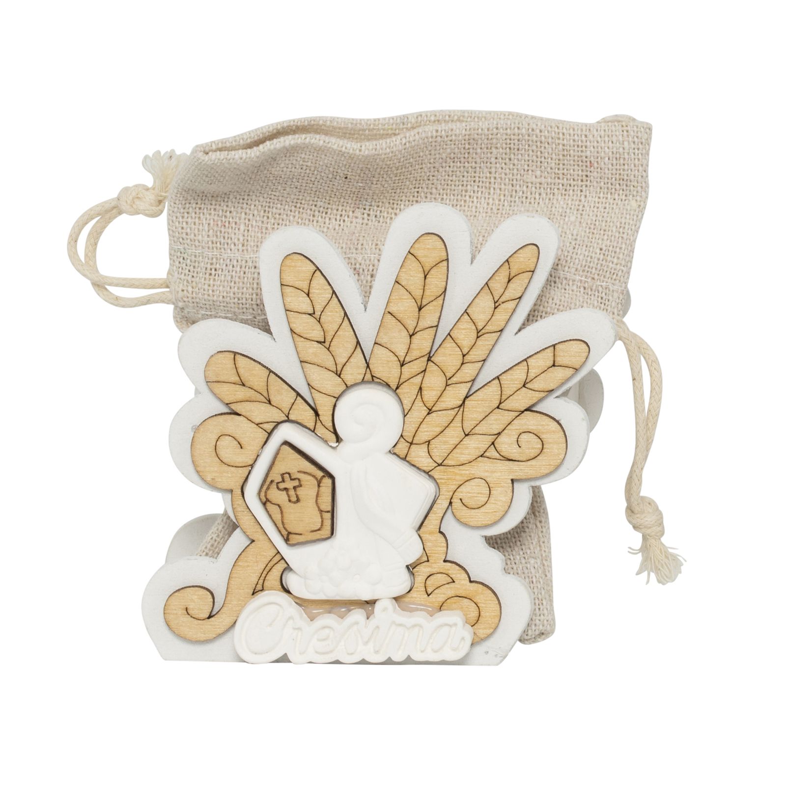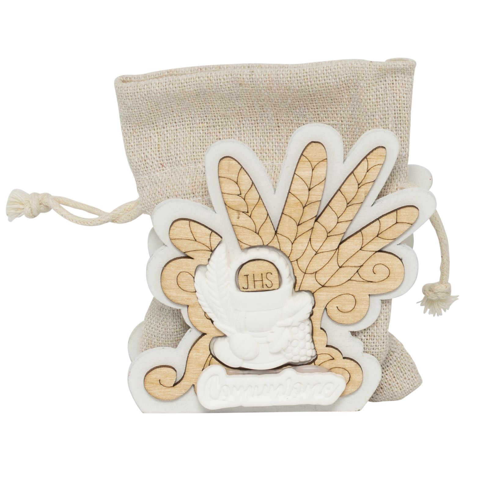 - Scatolina aperta in legno con gessetto "Comunione" e simboli (con sacchetto incluso) - Art. H1AS2392L - Dimensioni: 7,5 x 4 x 7,5 cm circa;