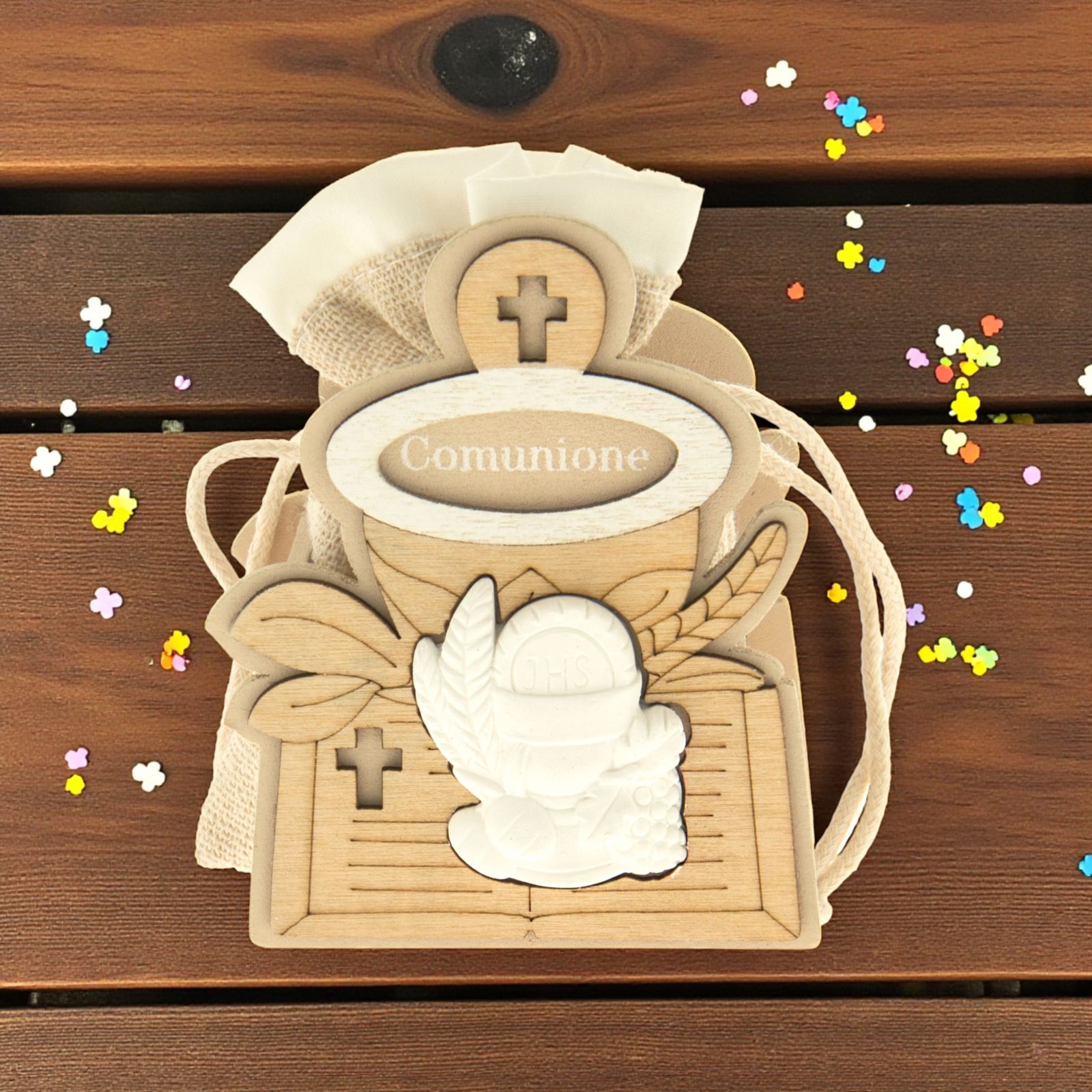 Scegli la nostra bomboniera per creare un ricordo unico e speciale della Prima Comunione. Acquista oggi stesso il Portaconfetti per Comunione e offri un regalo sacro che sarà apprezzato e conservato per sempre.